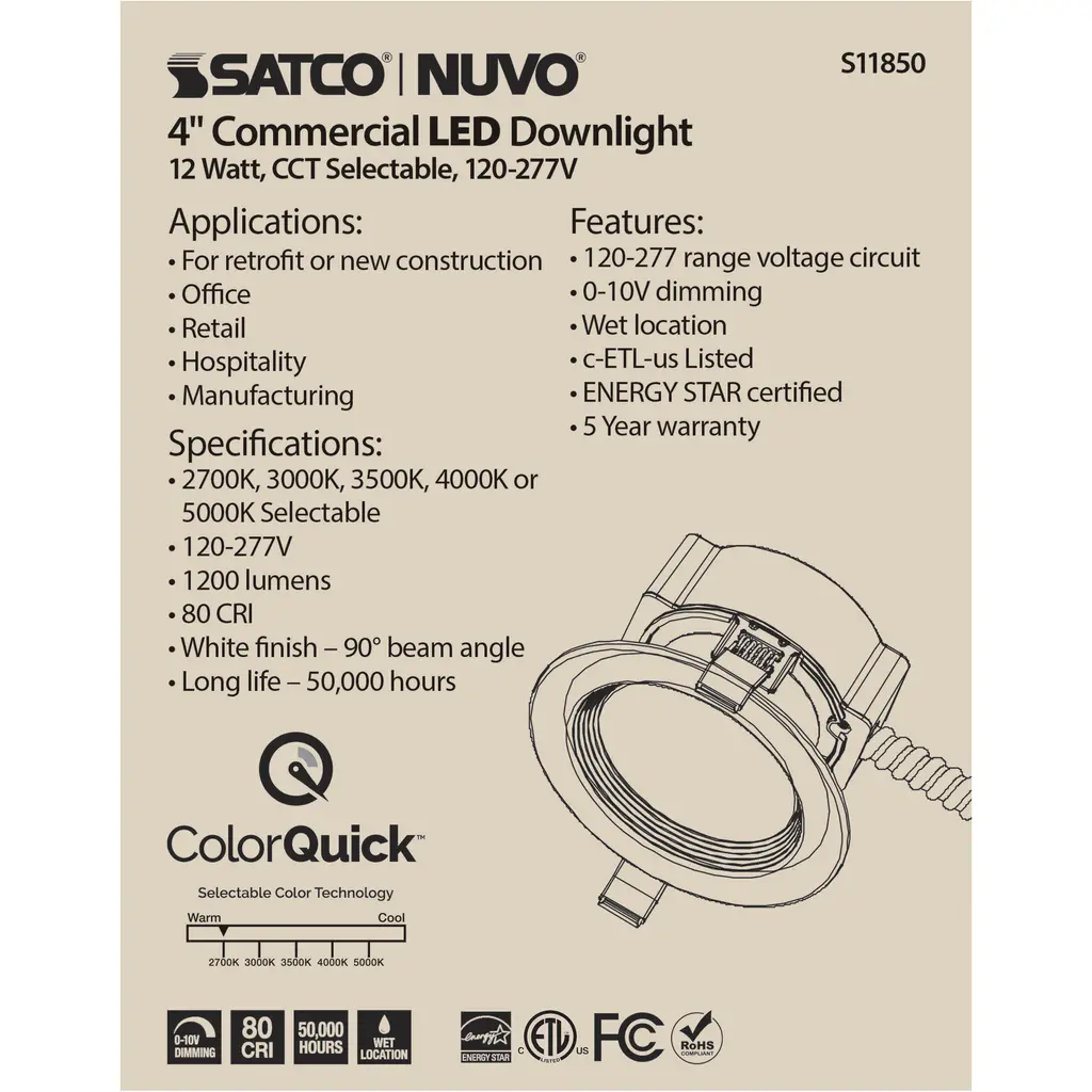 12 Watt Commercial LED Downlight; 4 in.; CCT Adjustable; 120-277 volt; Econo