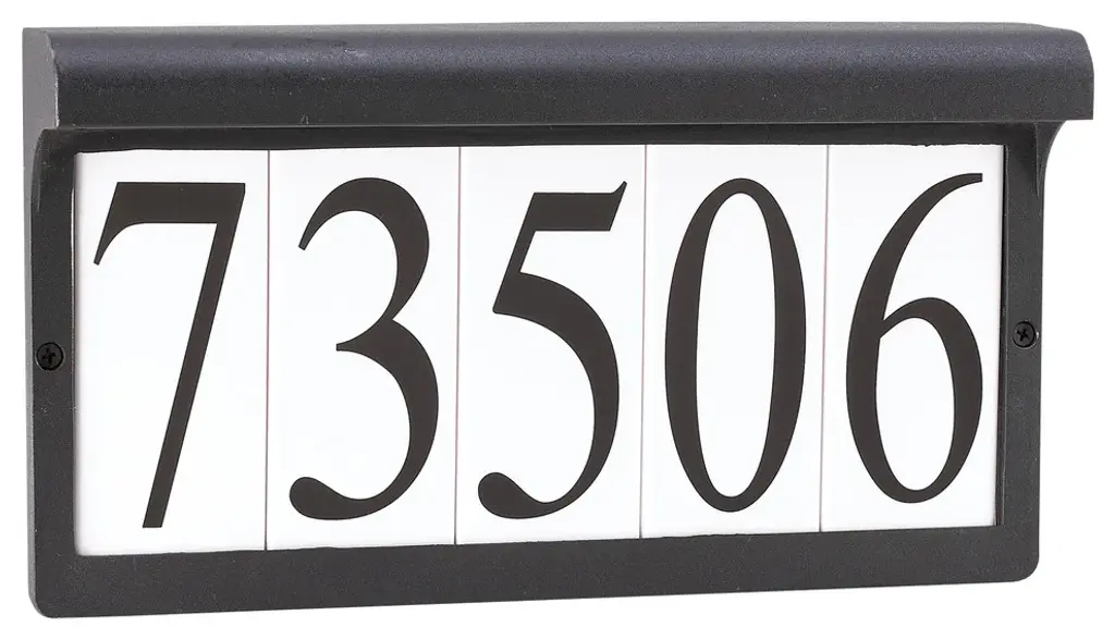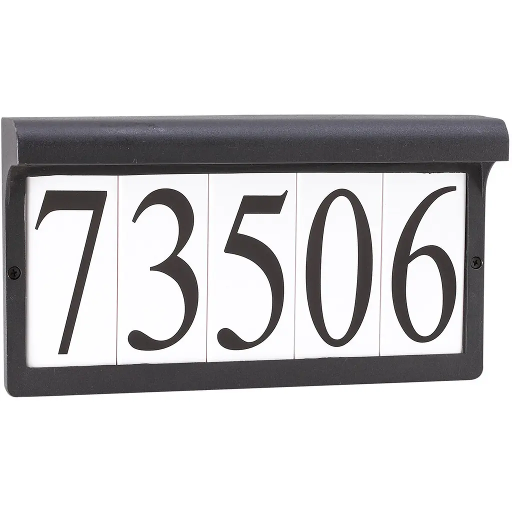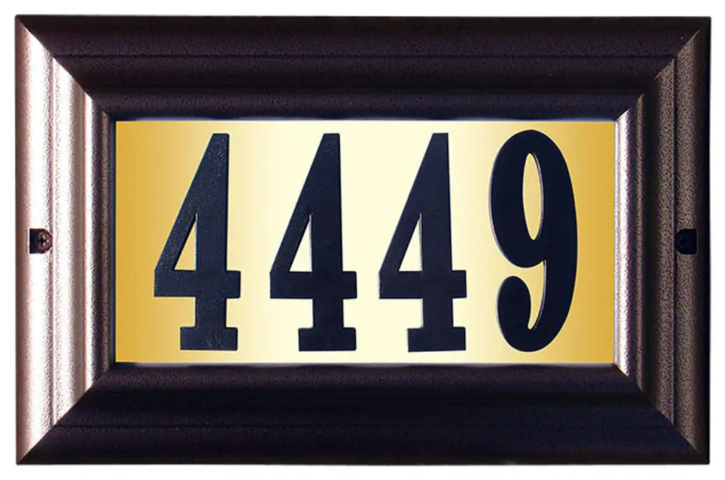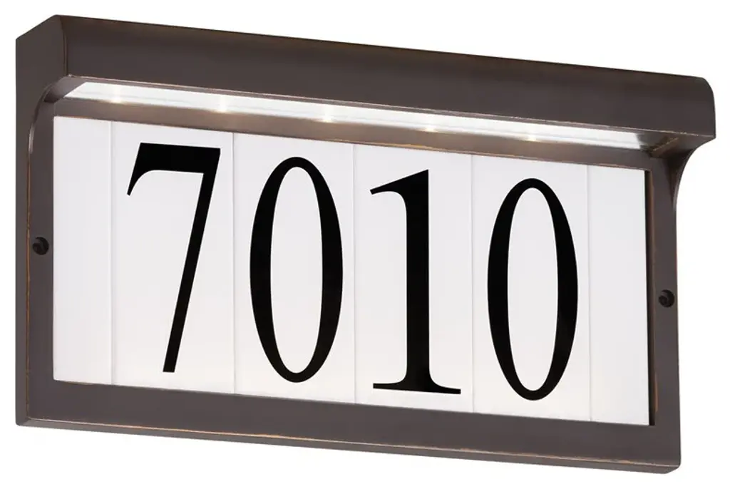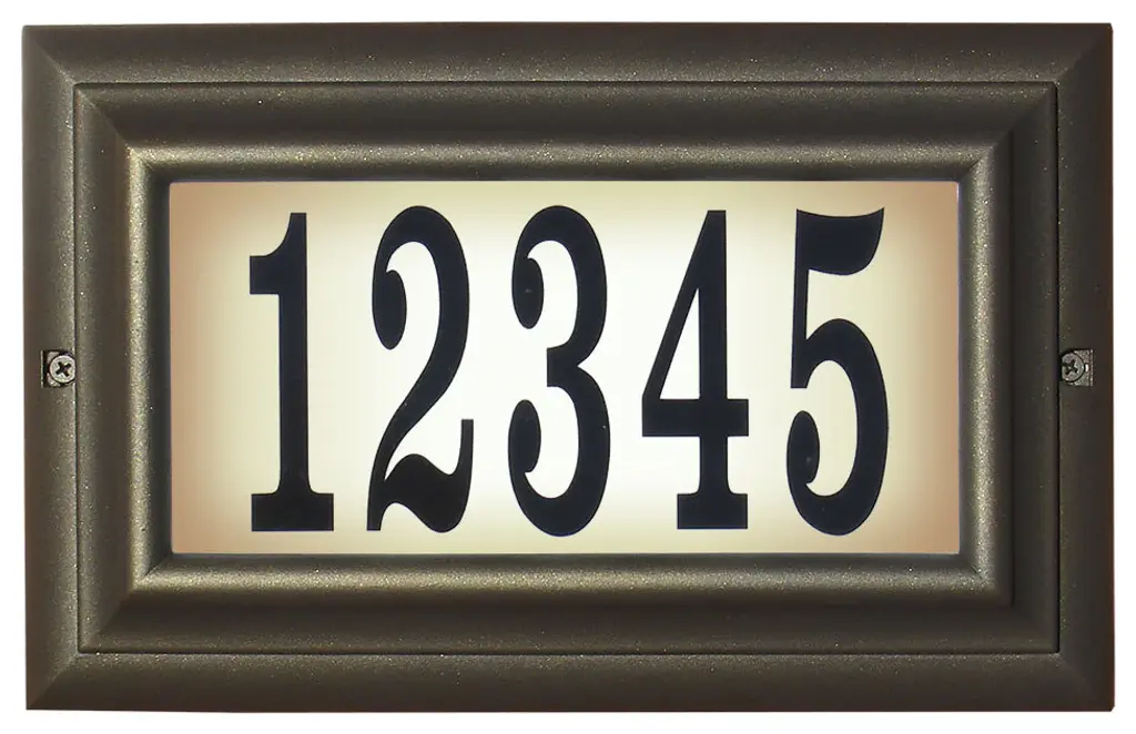 Edgewood Large Lighted Address Plaque In Pewter Frame ColorMade of cast aluminum, the Edgewood is an elegant way to display a home address. These low-voltage fixtures (only 12-24 volts) have a white back lit lens and are visible at over 100 feet away. The Edgewood provides fast and accurate address identification for guests, deliveries and emergency vehicles. Plaque comes with 4" black vinyl numbers or matching 4" cast aluminum raised numbers are also available. Can attach to existing doorbell transformer. A hardwire or plug-in low voltage transformer is also available and sold separately. Energy-efficient LED''s that use less power than standard incandescent bulbsCast aluminum powder coated frame4 in. black polymer numbers 0-9 twice, number template and tube of adhesive glue included in box100 ft. of hardwire included in plaquePewter color