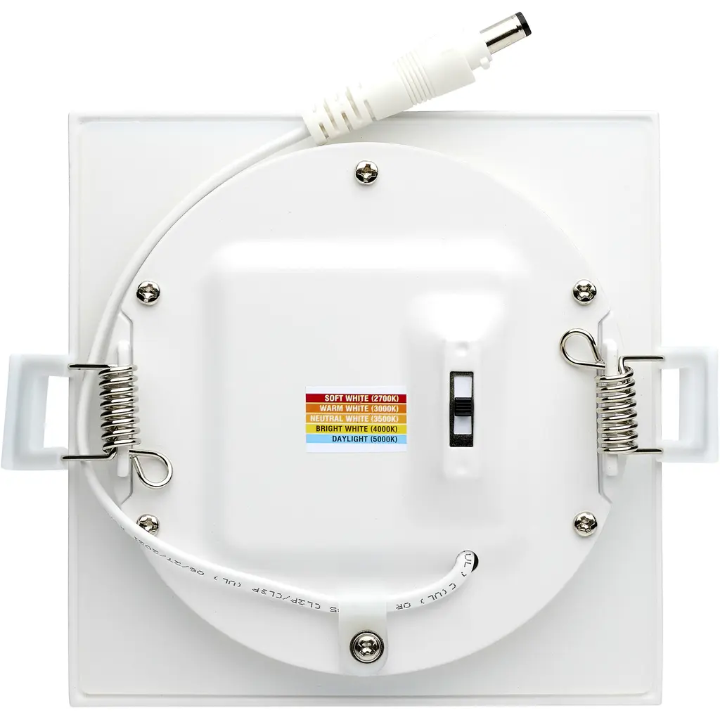 10 Watt; LED Direct Wire Downlight; Edge-lit; 4 inch; CCT Selectable; 120 volt; Dimmable; Square; Remote Driver