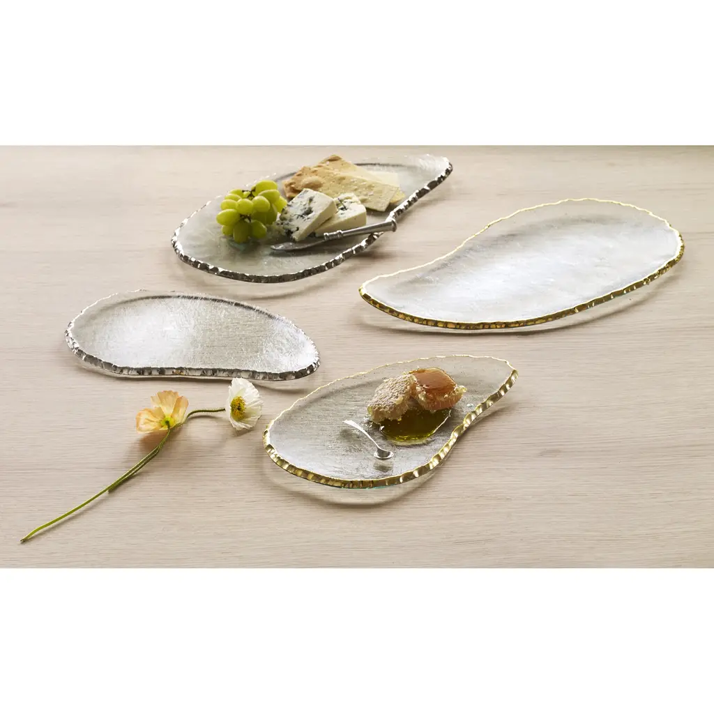 Beautifully handcrafted with an organic silhouette, this cheese slab is highlighted by a lustrous 24k gold or platinum rim.