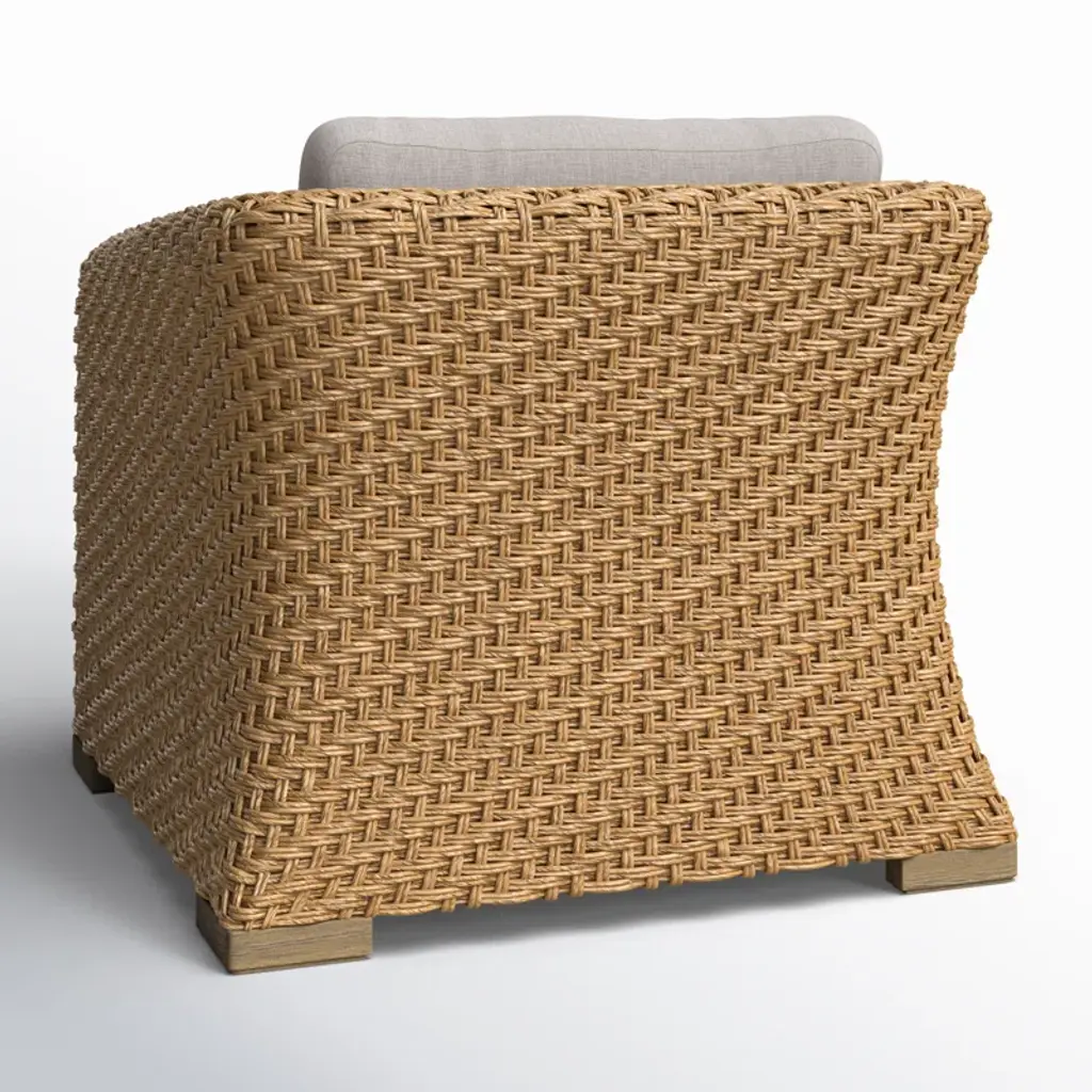 This outdoor armchair provides the perfect spot for morning coffee on the porch. Crafted to withstand the elements, the design features a classic barrel construction with sloping arms – we love that it's wrapped in HDPE all-weather wicker for a traditional look and modern functionality. Solid eucalyptus feet make for a stable base, while foam cushions ensure your comfort.