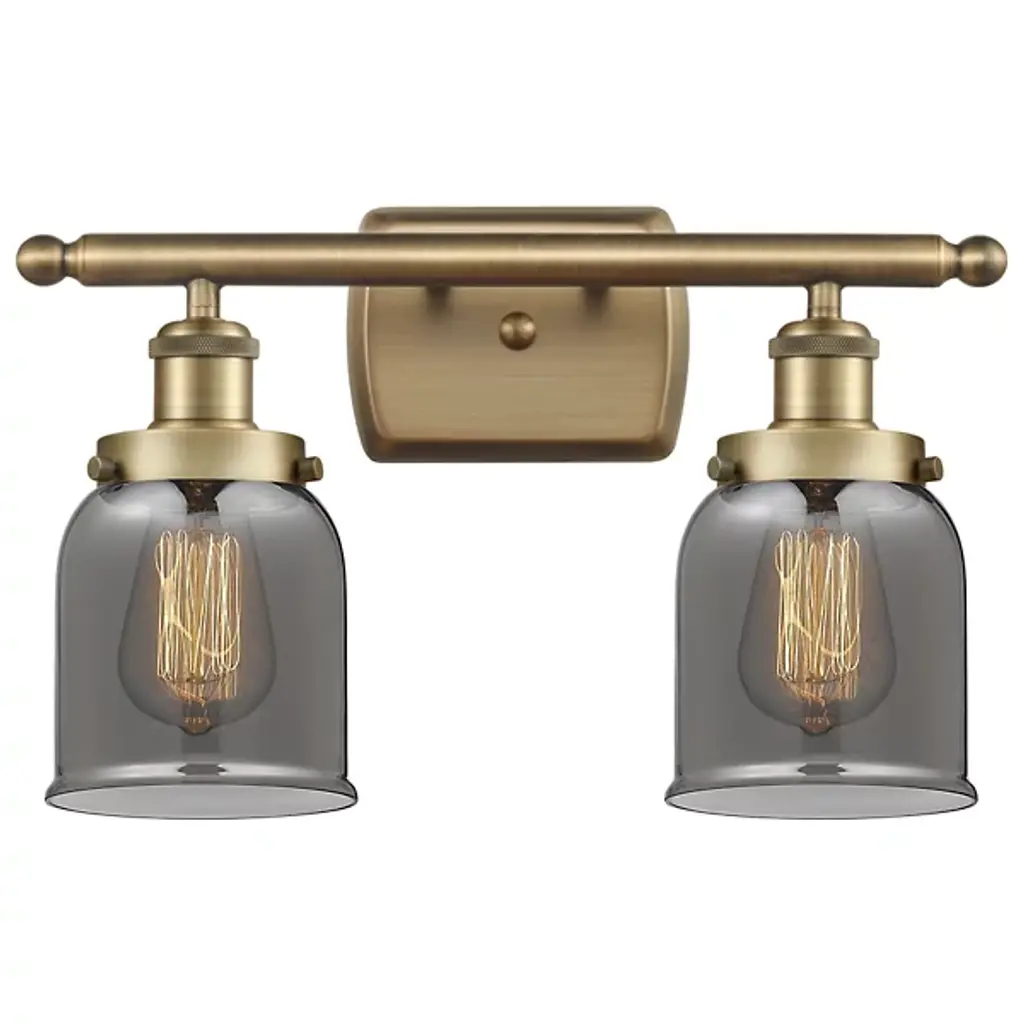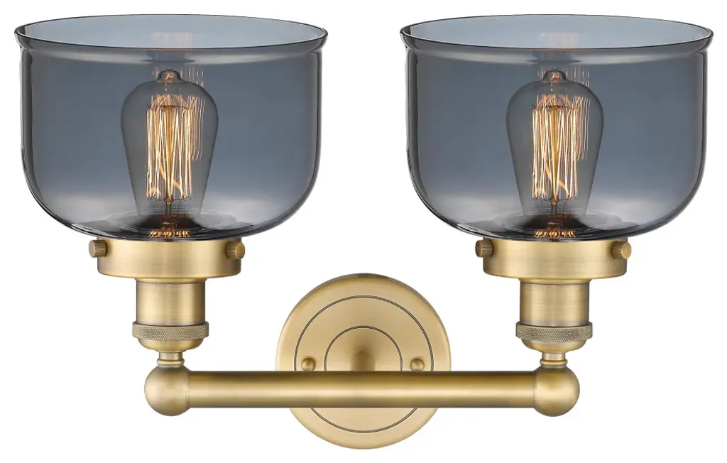 Edison Large Bell-2 Lt 16"bath Vanity Lt-Brushed Brass Finish-Plated Smoke Shade