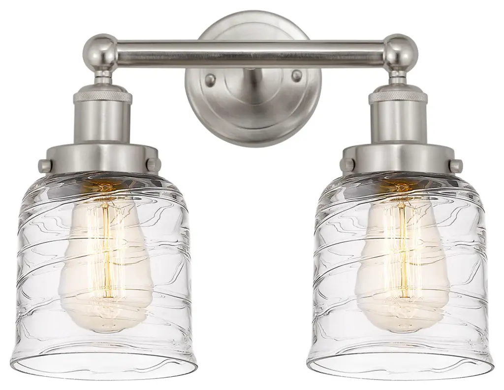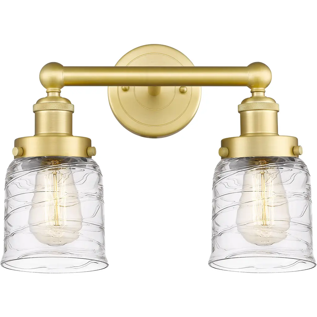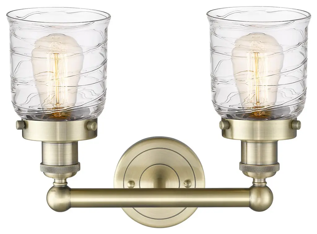 Edison Small Bell-2 Lt 16"bath Vanity Lt-Antique Brass-Clear Deco Swirl Shade