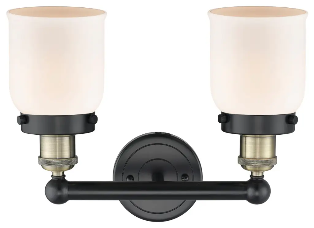 Edison Small Bell-2 Lt 16"bath Vanity Lt-Black Antique Brass -Matte White Shade