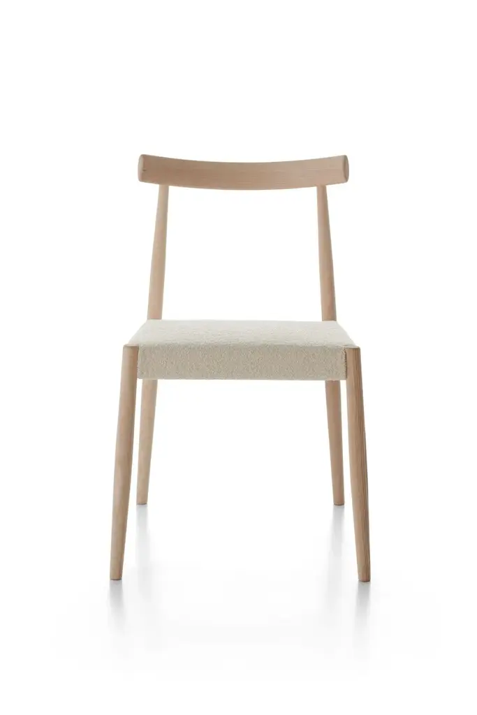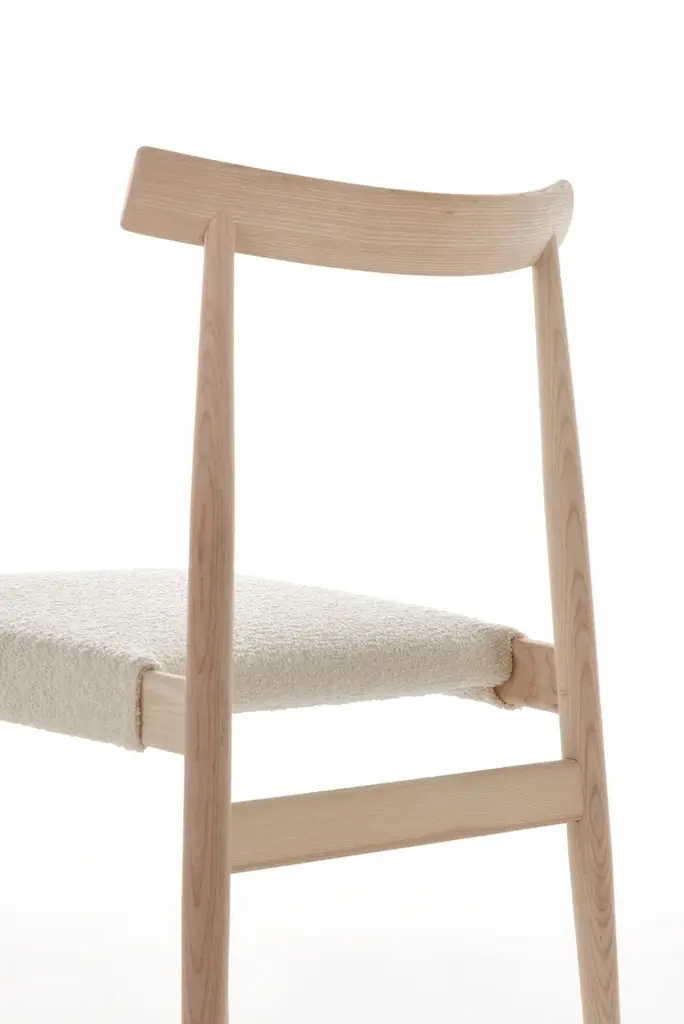 The Edo collection is an ode to traditional craftsmanship.The wooden structure is designed as a frame to which different fabric or leather seat solutions can be attached, making it versatile and suitable for different settings. Featuring a sleek design inspired by Japanese aesthetics – the chair is named after ancient Tokyo –. StructureThe frame is made of solid ash (wood from well-managed forests) in the colours bleached, stained natural oak and stained black.The chair consists of circular-section legs with a tapered profile, while the elliptical-section back is a distinctive detail in the simple design. The legs and crosspieces are interlocking, so that all the elements that define the chair’s style are also functional and indispensable to its construction. Nylon feet. SeatThe seat is made of polyurethane foam and upholstered in fabric or leather. The seat’s fabric upholstery is removable. The product is only intended for indoor use.