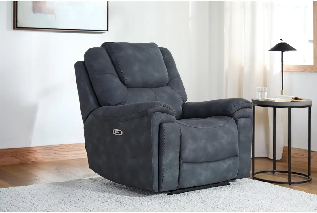 Experience ultimate comfort and convenience with the Eero Grey Fabric 41" Power Oversized Theater Recliner. Perfect for your living room, this recliner combines modern technology with plush seating to create the ideal spot for relaxation.