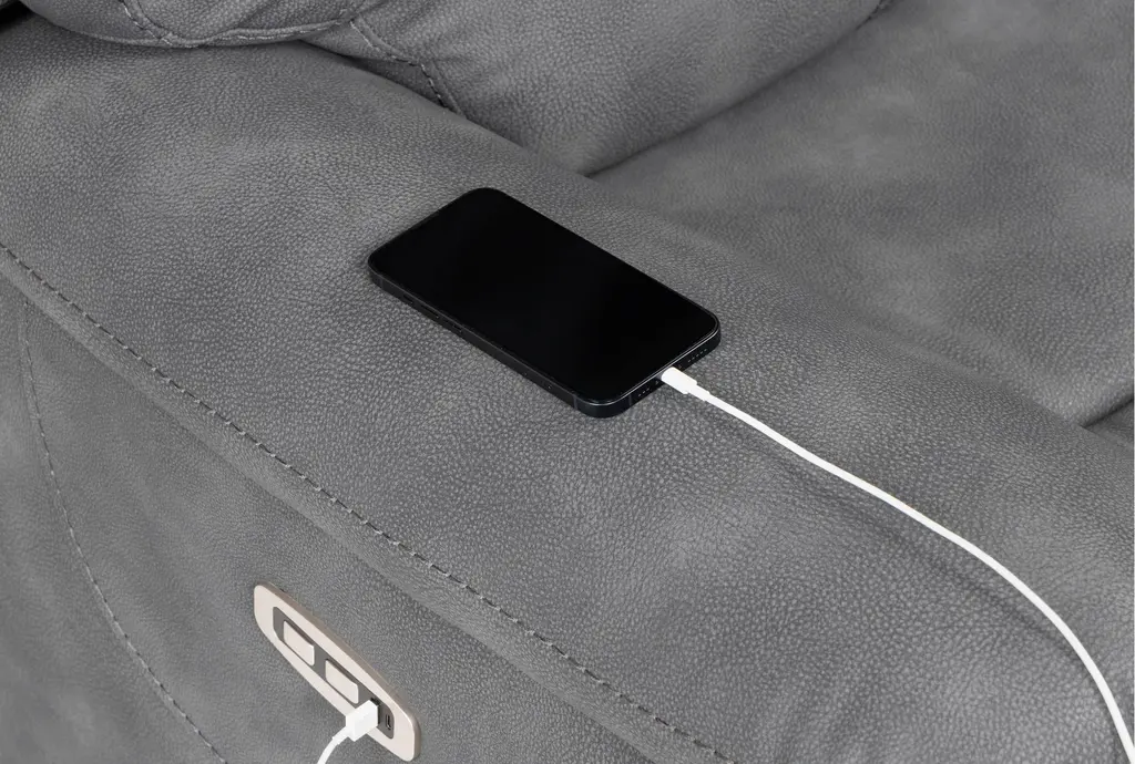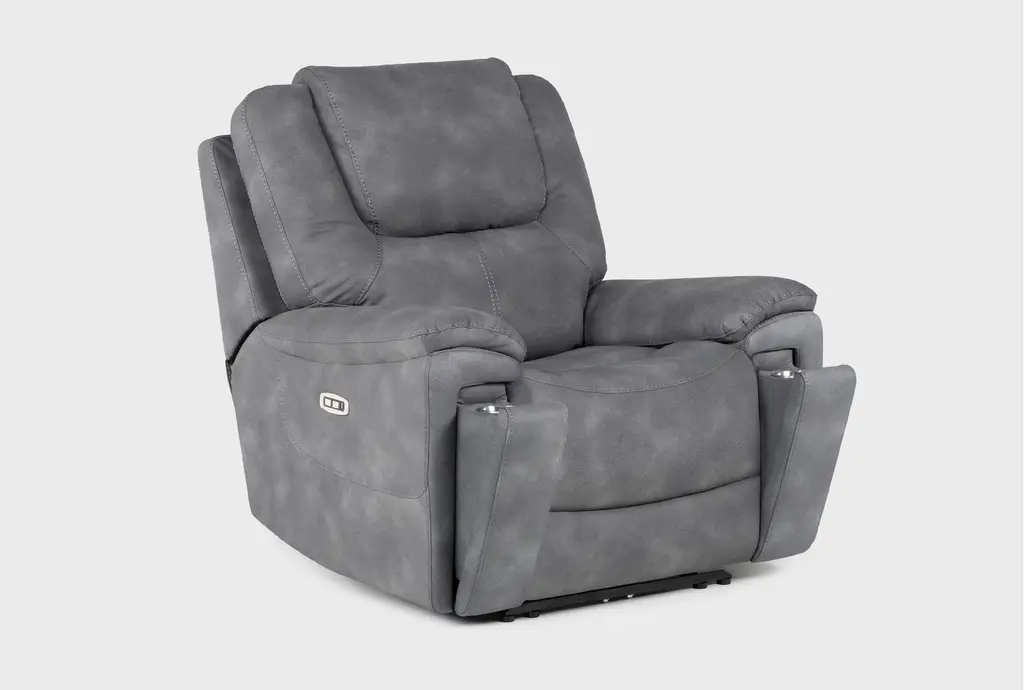 Eero Grey Fabric 41" Power Oversized Theater Recliner With Cupholders & Usb