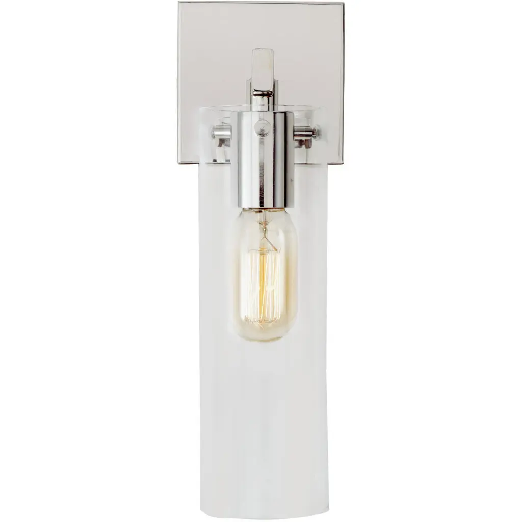 Add a touch of modern sophistication to your home with Effimero Wall Sconces. Designed to coordinate with the best selling Effimero pendant collection, Effimero wall lamps are available in a variety of finish options and glass types.Ideal for bedrooms, bathrooms, corridors and entryways, Effimero wall fixtures provide generous lighting for spaces large and small. The fixture measures 20 inches high, 4-1/2 inches wide and projects 4 inches from the wall. It has a 4-1/2 inch square backplate, and a clear glass shade that measures 3.5 inches in diameter by 8 inches high. It uses one medium base bulb and is compatible with a number of options, including incandescent (60W max), Compact Fluorescent and LED (bulb not included). It is fully dimmable when used with a compatible bulb. UL Listed.Bulbs Included: NoNumber of Bulbs: 1Wattage: 60Damp Rated