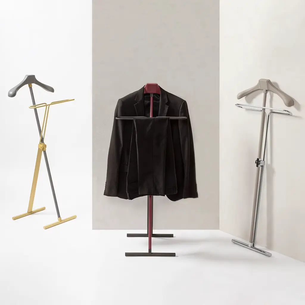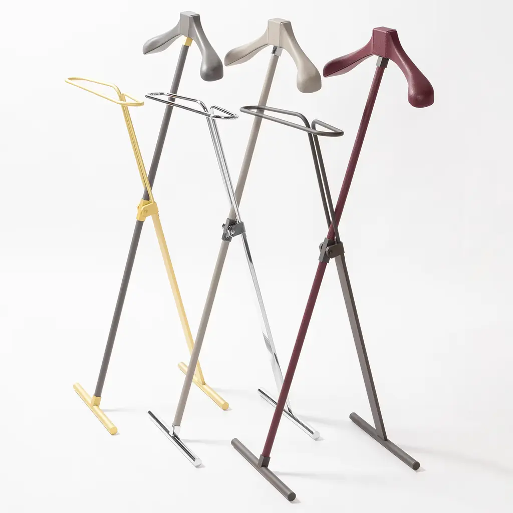 Folding metal structure available in different finishes with leather inserts. Metal finishes available: chrome / bronze / brass.