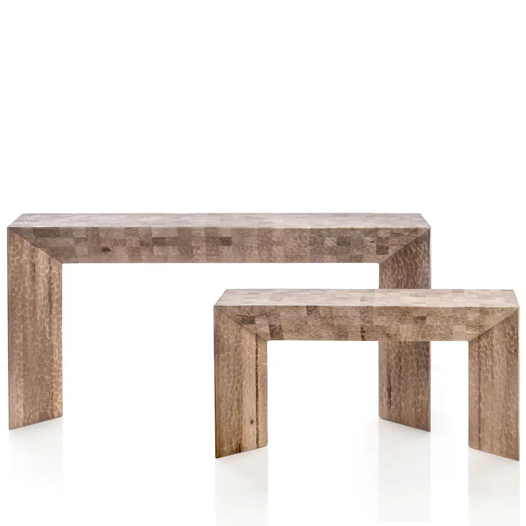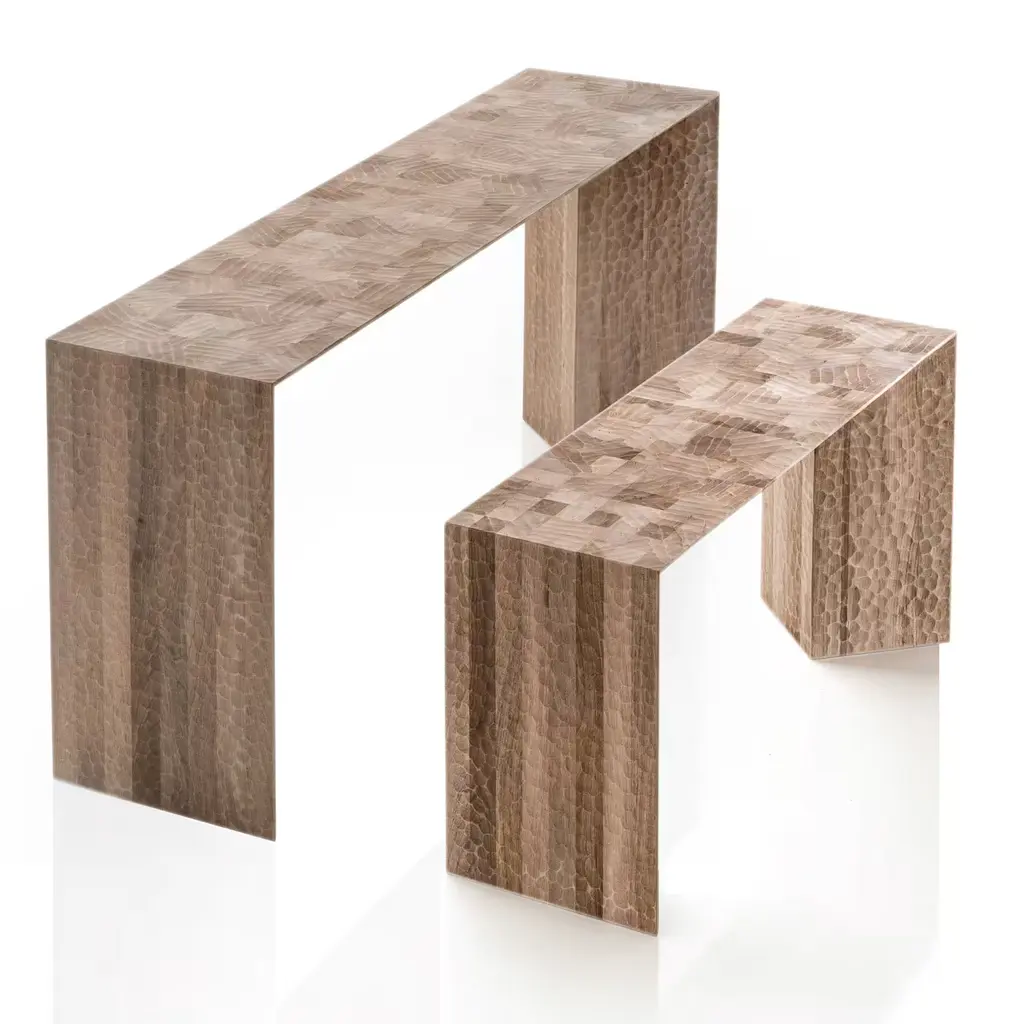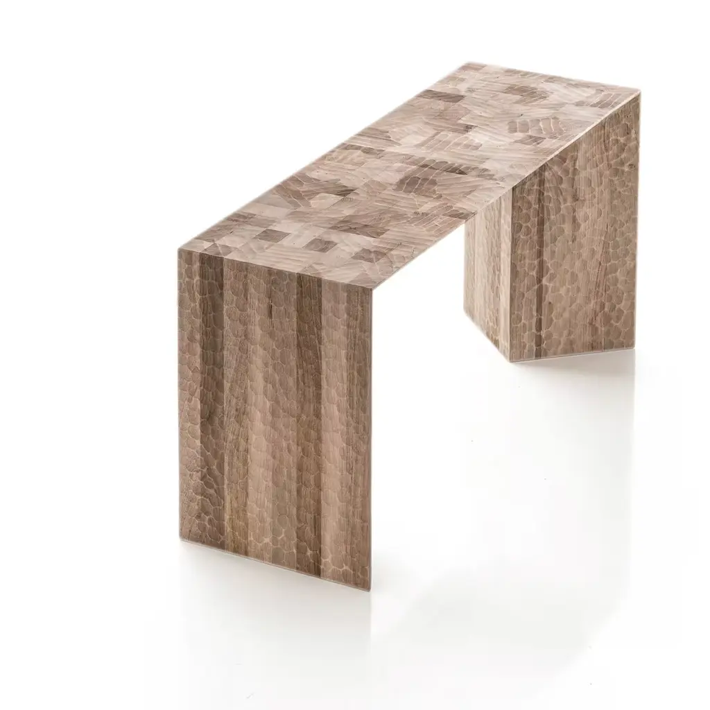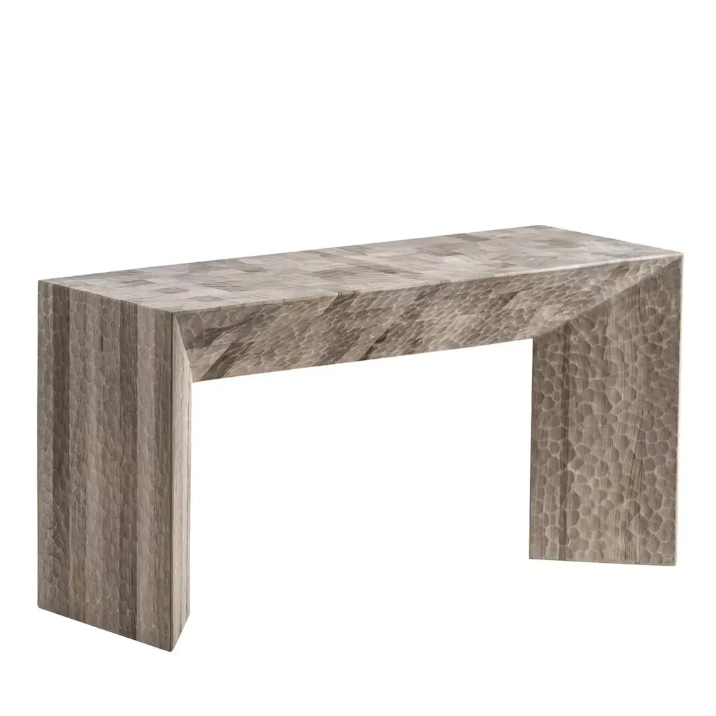 The solid Italian walnut wood of this console is hand worked with a raw edge. The result is a minimalist object made of three lines that evoke both the density and the substance of the matter they are made of.