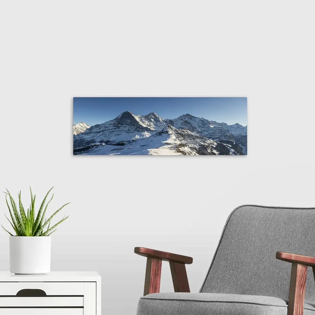Eger, Monch, Jungfrau from Mannlichen, Jungfrau Region, Berner Oberland, Switzerland.