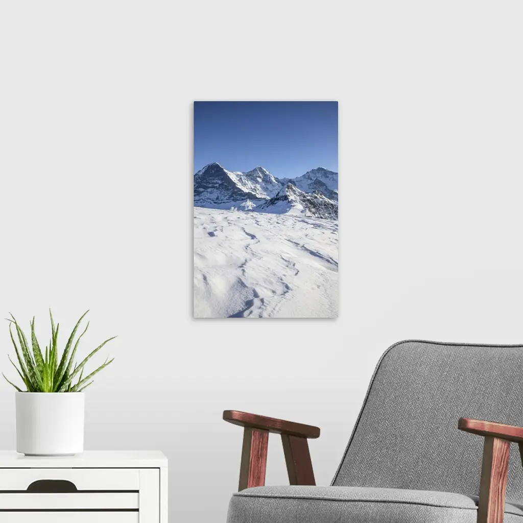 Eger, Monch, Jungfrau from Mannlichen, Jungfrau Region, Berner Oberland, Switzerland.