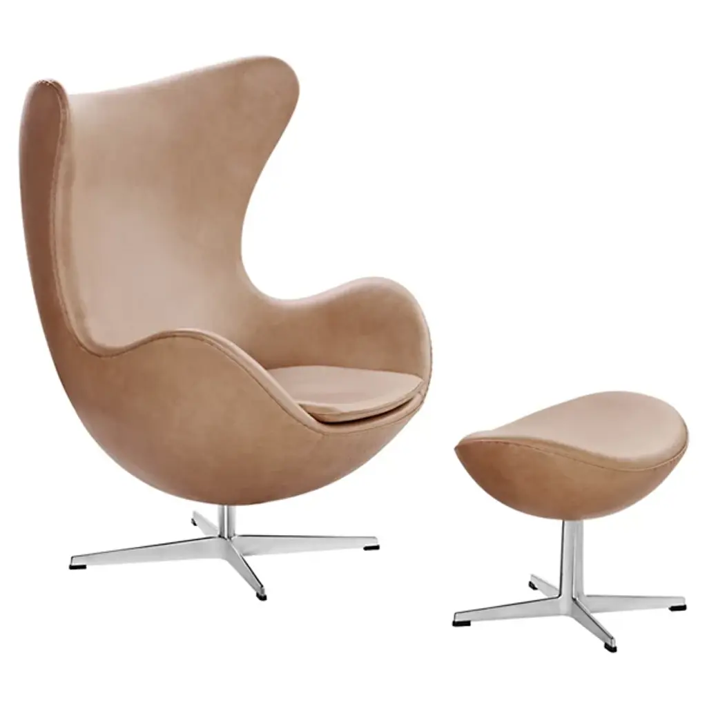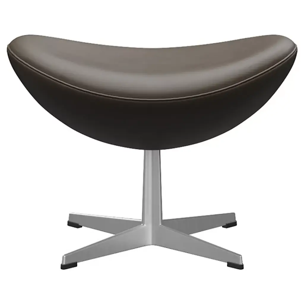 A curvaceous and comfortable complement to the Egg Chair. The Fritz Hansen Egg Chair Ottoman features the same star shaped steel base as the chair, with an upholstered top that has a gentle upward curve to match the chair and cradle your feet. Designed by Arne Jacobsen in 1958. Numerous fabric upholstery options available.