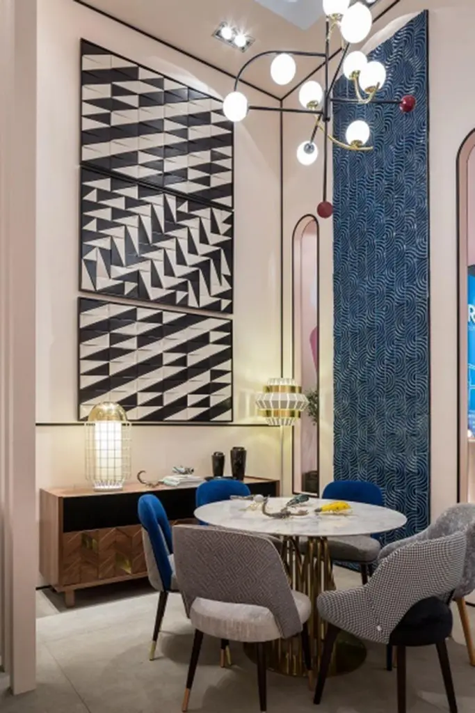 Tua is a rhombus shaped tile that plays with volumetry, allowing the same tile to unfold in an array of shapes,which go from stellar constellations to elegant waves. The Tua collection is composed by two tiles: Tua Plain, which is flat surfaced, and Tua Stripes, equal in shape but composed by slightly asymmetric lines that give a strong sense of movement.Made to order. Tiles sold per sqm; min. order 2sqm. List price indicates the price of 1 square meter of tiles.
