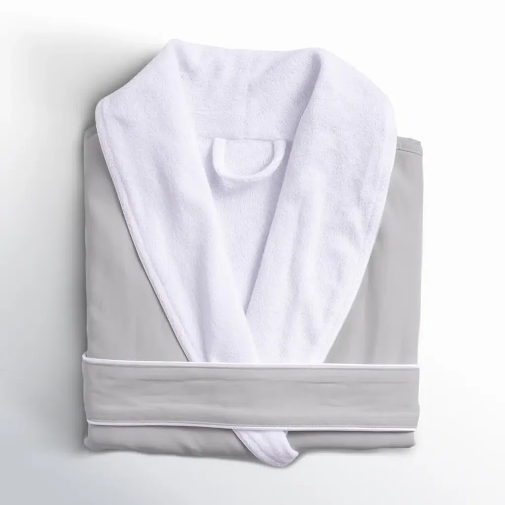 Crafted from the finest combed cotton, this pure velour bathrobe is finished with an antibacterial treatment that inhibits bacteria growth and protects from odours, having greater durability. Super comfortable and smooth, it also provides great absorbent capacity.