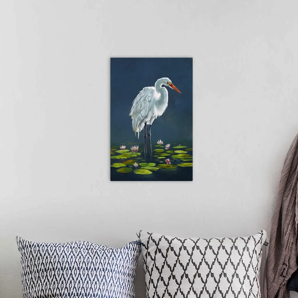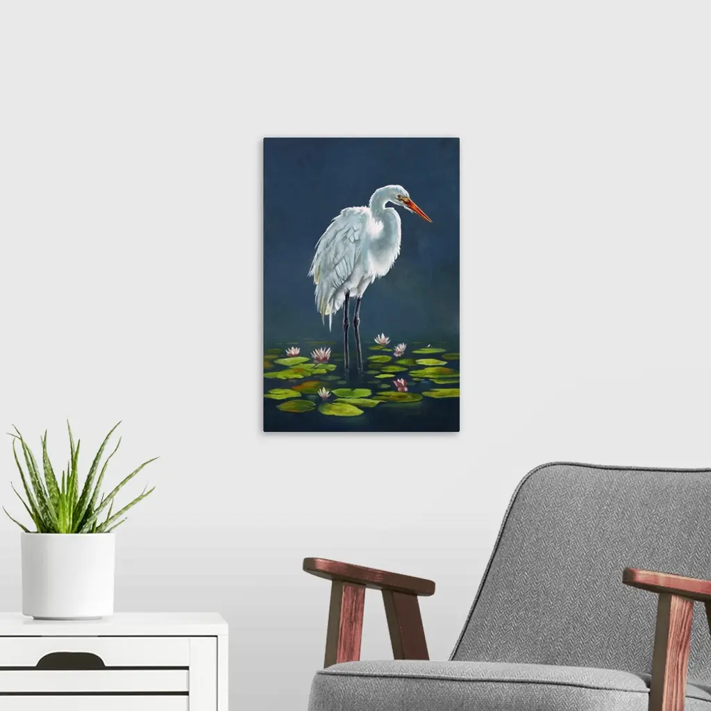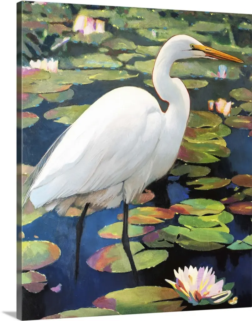 Egret Amongst The Lily Pads wall art for home and office decor. Discover canvas art prints, photos, mural, big canvas art and framed wall art in GreatBigCanvas.com's varied collections.