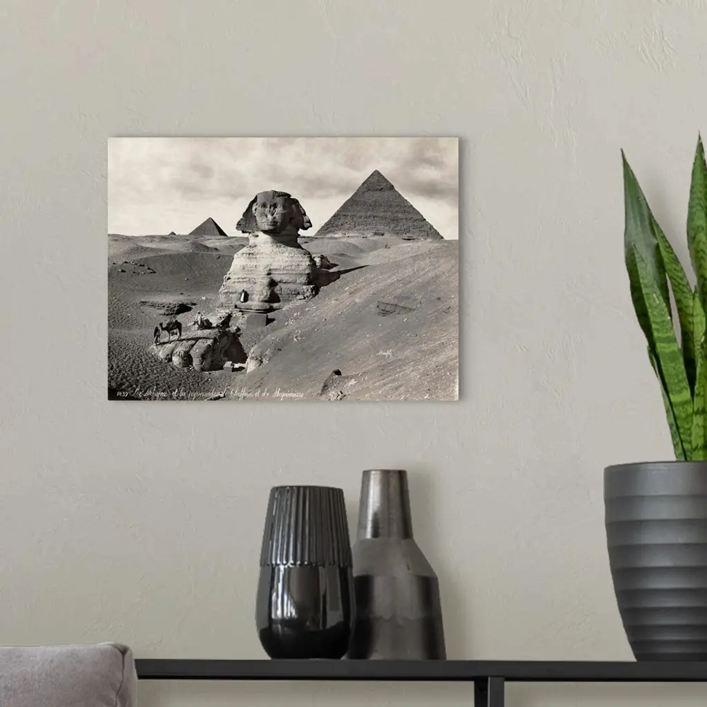 Egypt, Pyramids And Sphinx. the Great Pyramids And Sphinx At Giza, Egypt. Photograph, Late 19th Century.