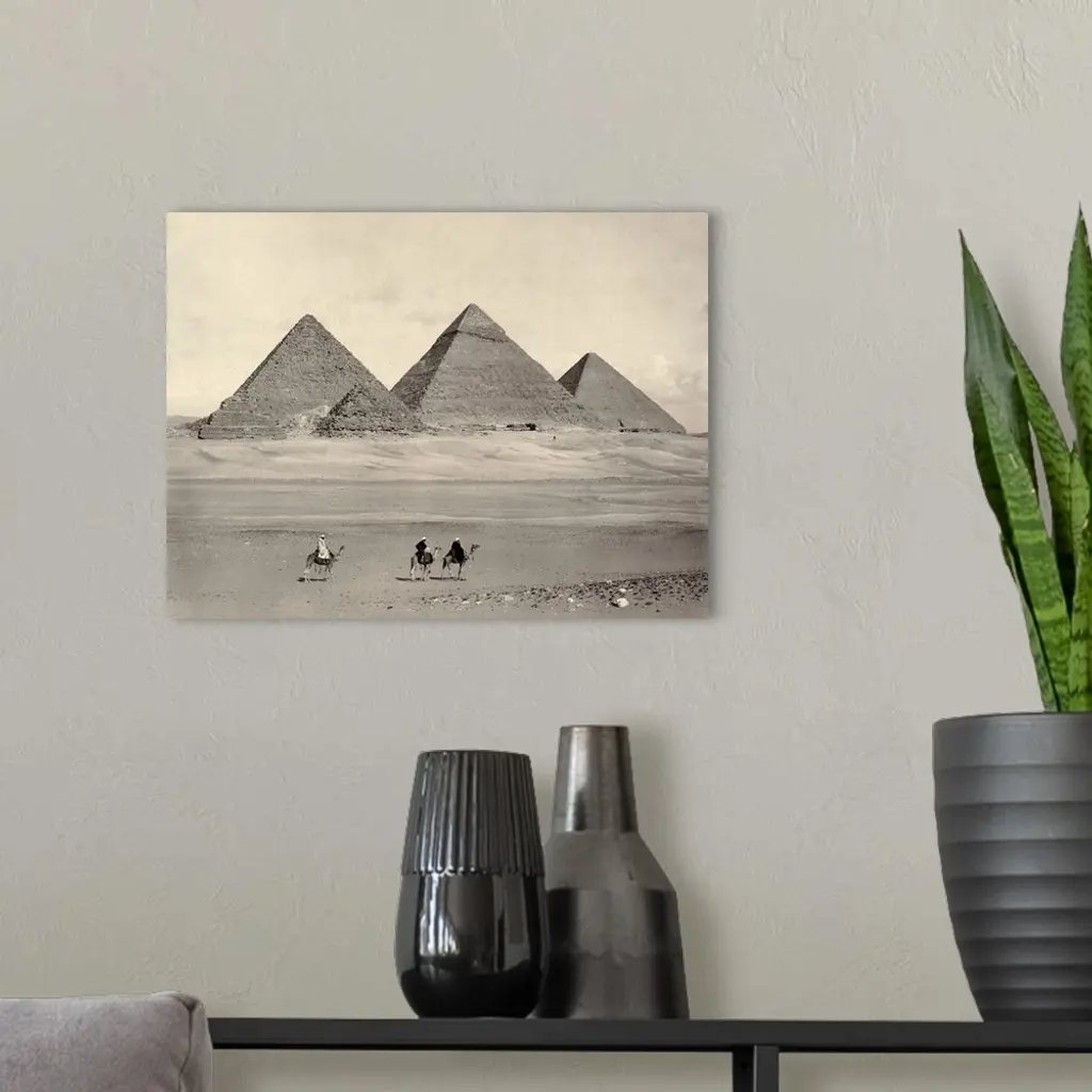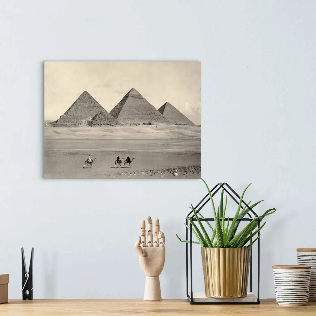 Egypt, Pyramids At Giza. the Pyramids At Giza, Egypt, With three Travelers In the Foreground. Photograph, Late 19th Century.
