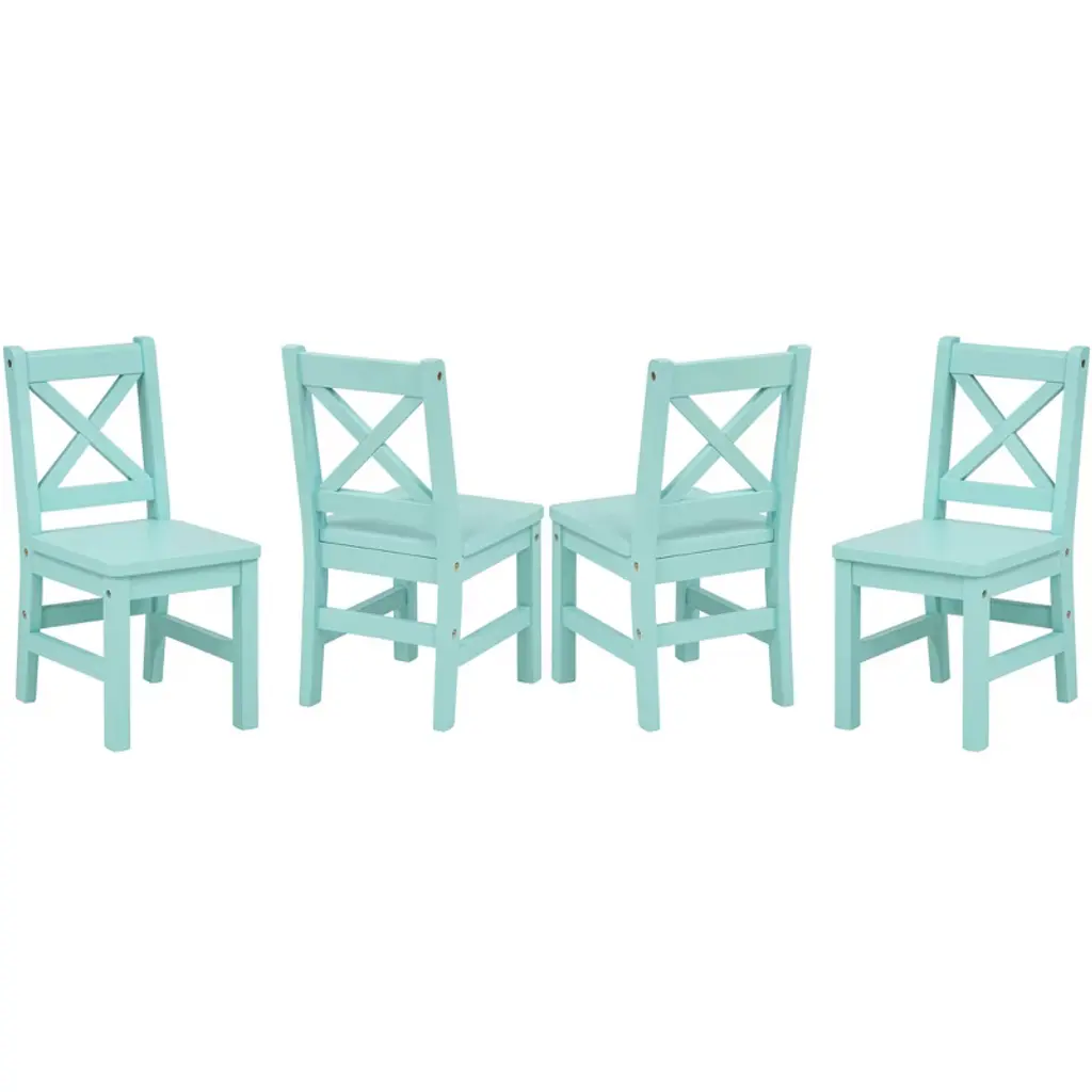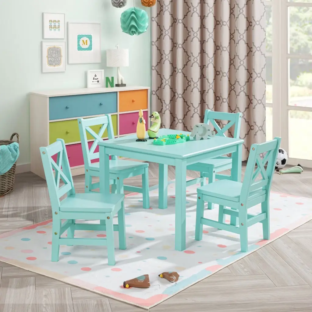 Ehemco Solid Hard Wood Kids Table And Chair Set (4 Chairs Included), 5 Piece Set, Coffee