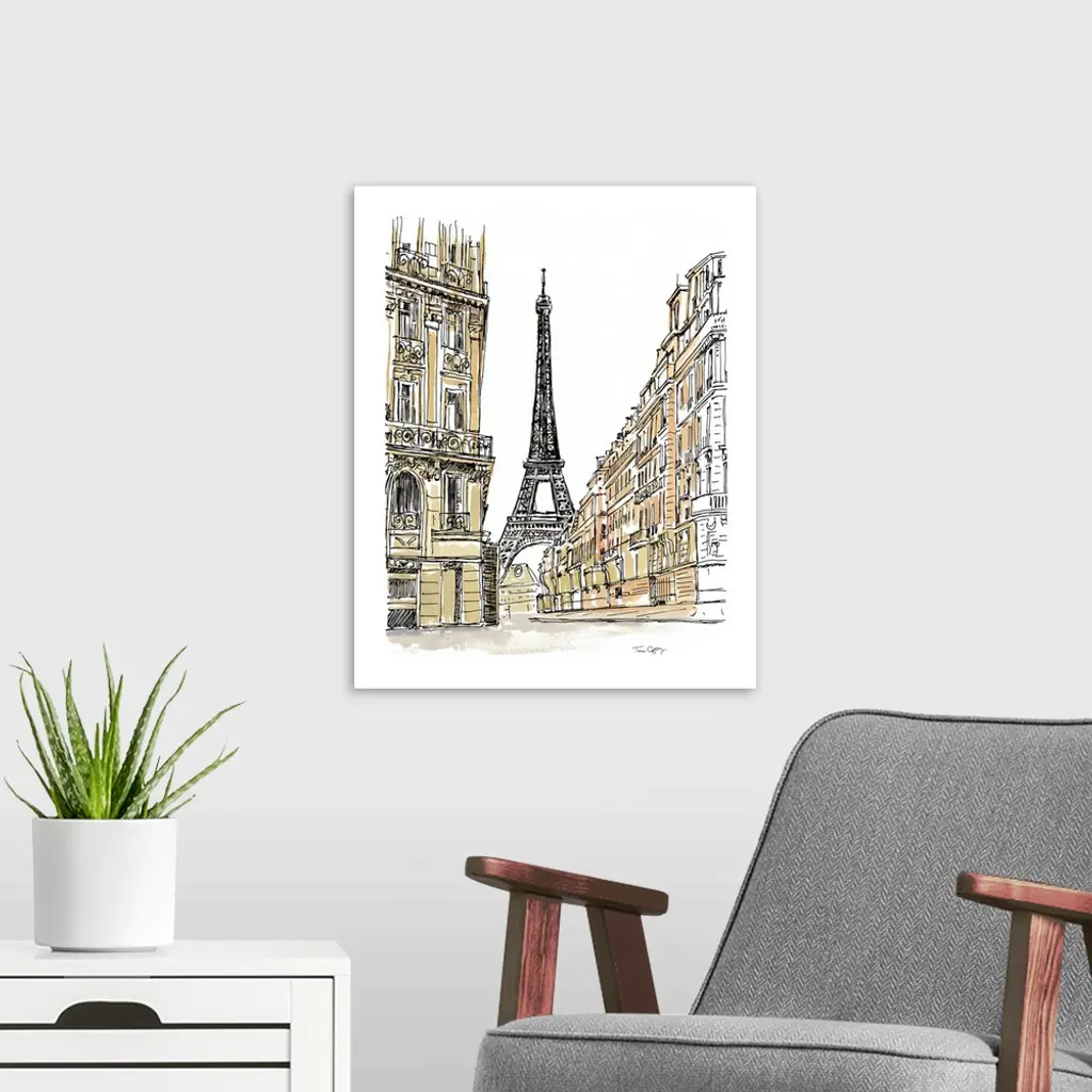 A lovely pen and ink depiction of a the striking Eiffel Tower.