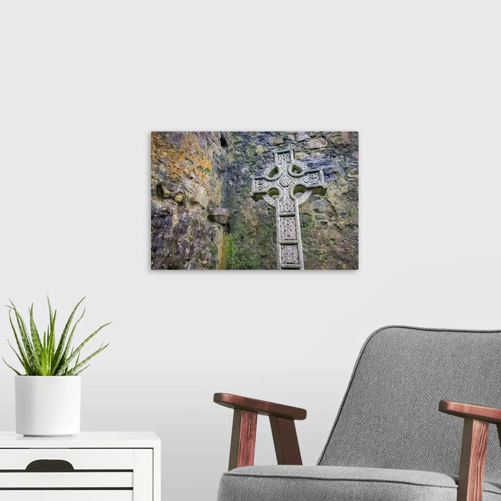 Elaborate Celtic Cross Marks A Grave At A Historic Irish Church, County Mayo, Ireland
