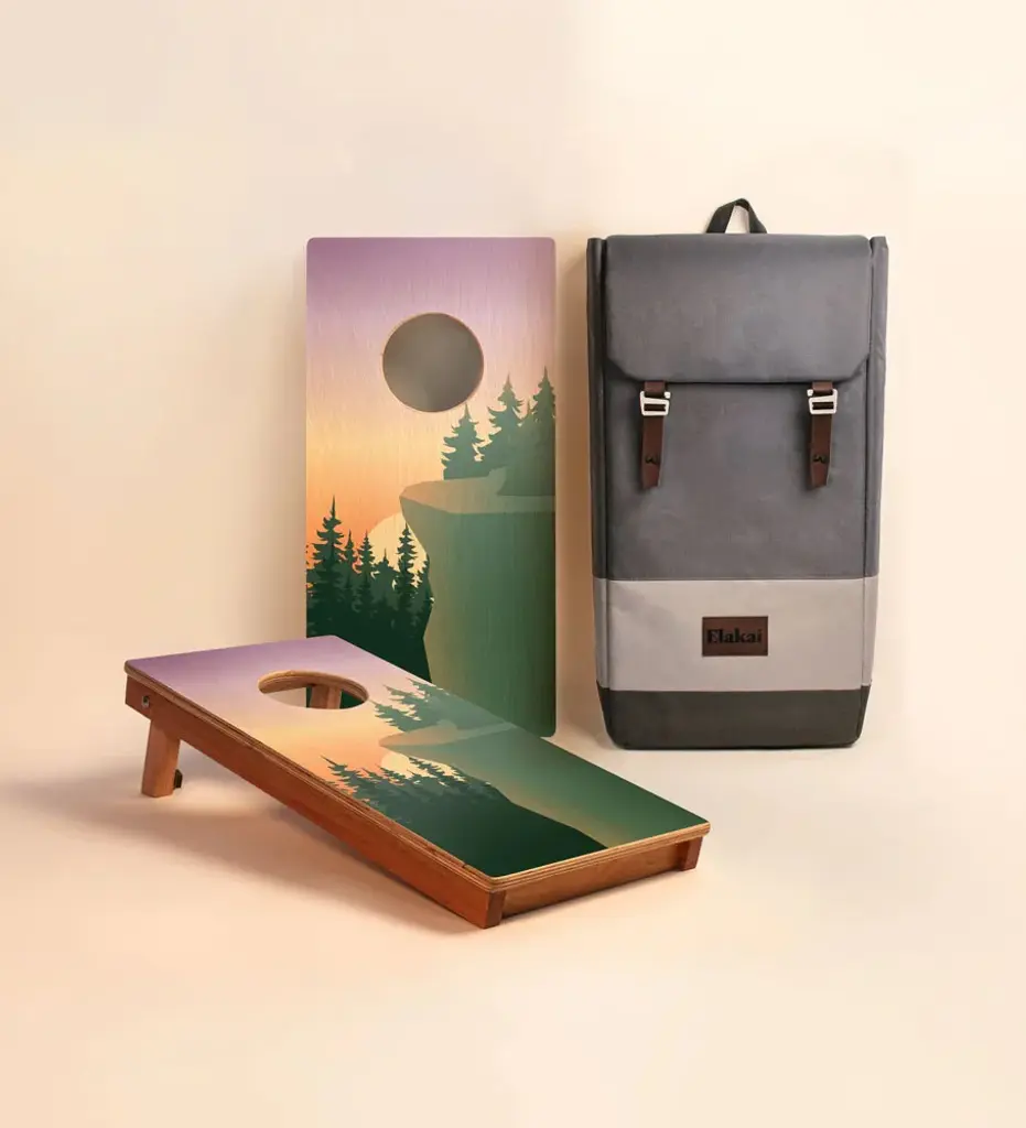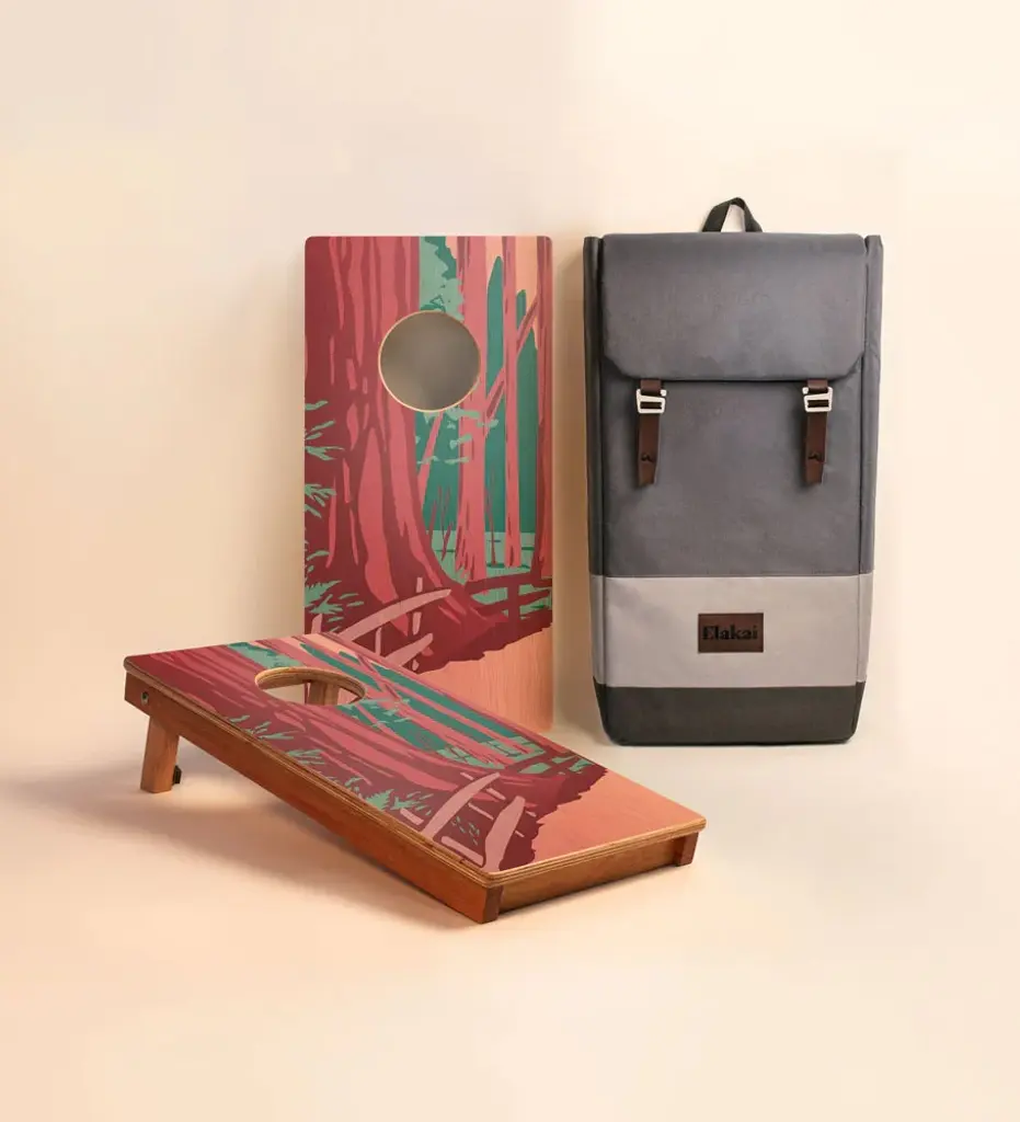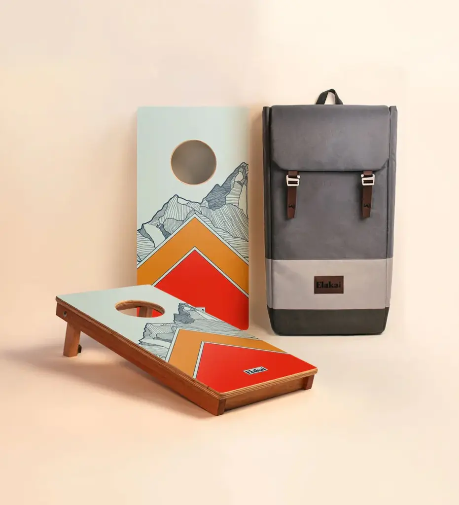 Carefully crafted from the finest materials, this one-by-two-foot regulation cornhole board set features a premium grade plywood deck with a beautiful mahogany frame. Outdoor-inspired graphics are printed directly to the wood surface. Proud partners of the National Forest Foundation and 1% for the Planet, Elakai is dedicated to protecting the environment as well as investing in social experiences. Their games are handmade from carefully-selected premium materials. Processed in small batches to the highest standards, each piece is unique and durable. Enjoy the outdoors with Elakai. Note: When not in use, this product needs to be stored indoors.