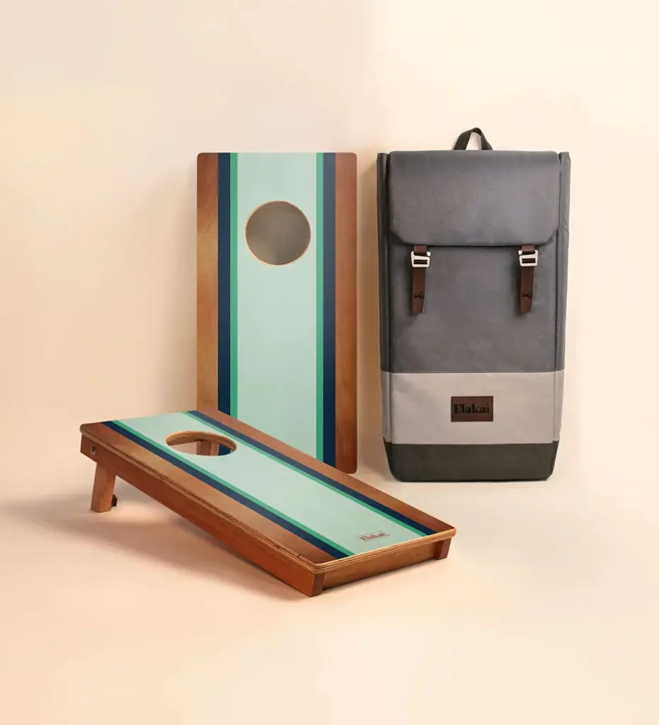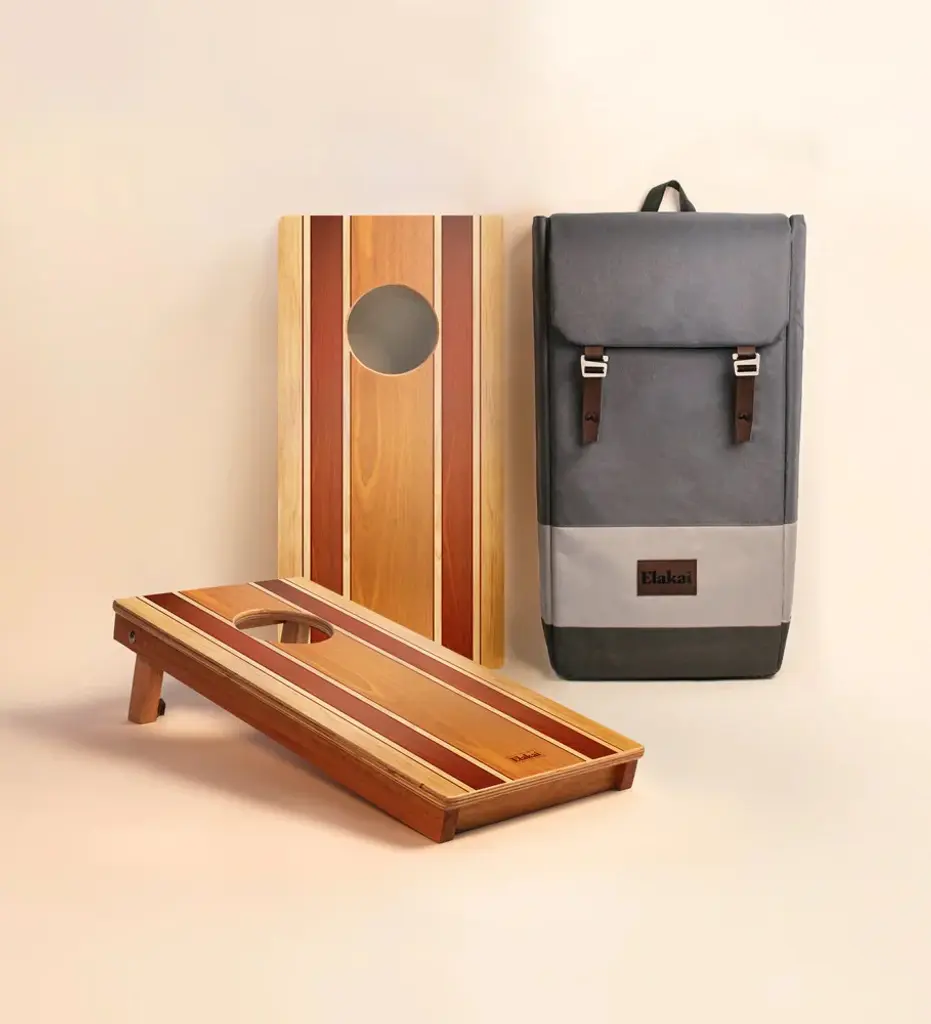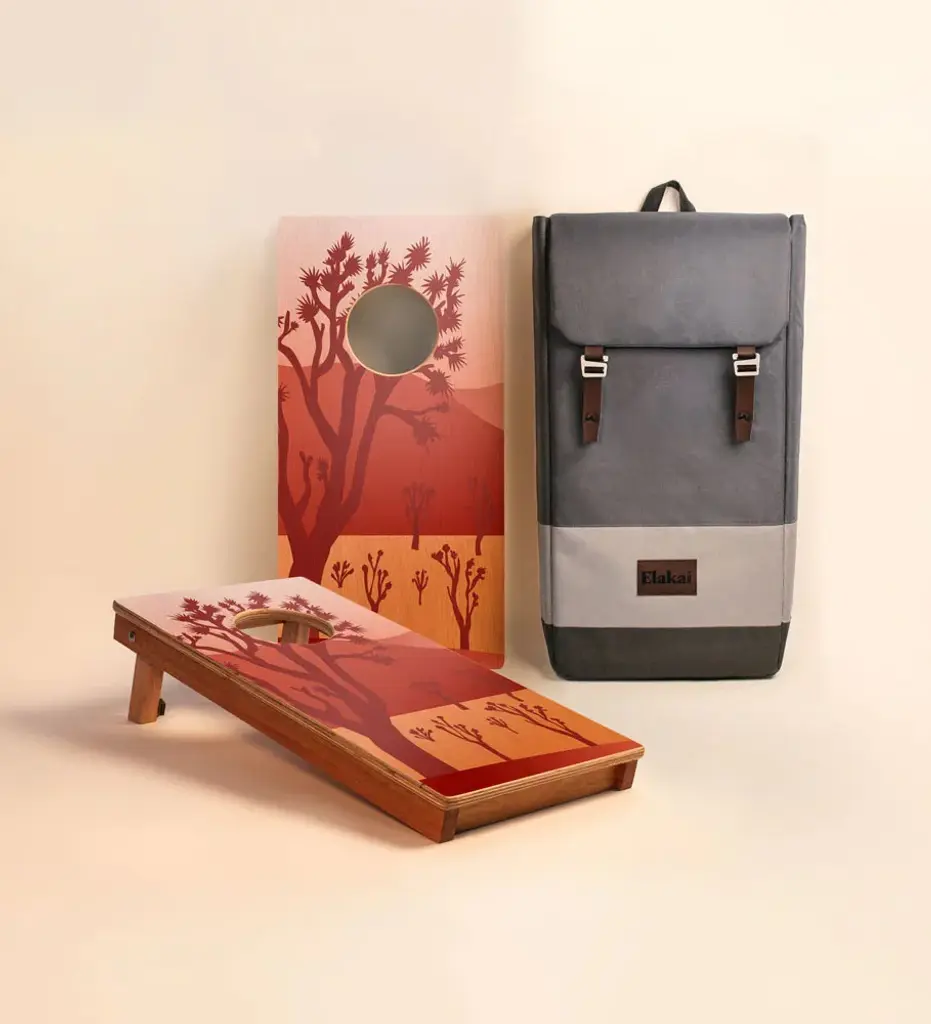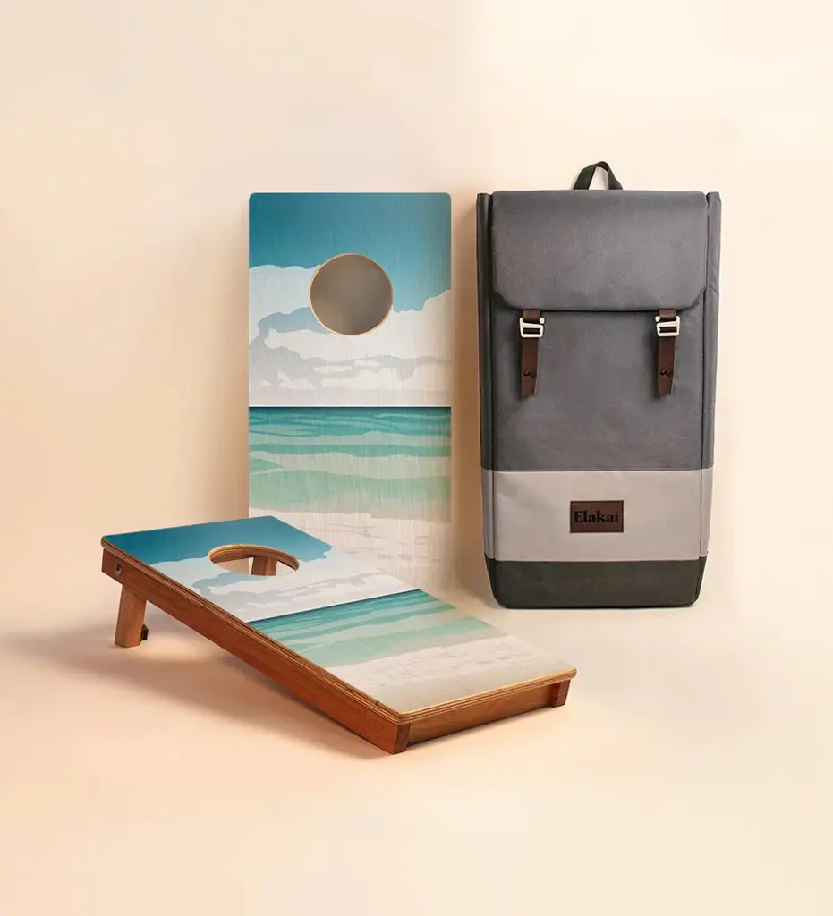 Carefully crafted from the finest materials, this one-by-two-foot regulation cornhole board set features a premium grade plywood deck with a beautiful mahogany frame. Outdoor-inspired graphics are printed directly to the wood surface. Proud partners of the National Forest Foundation and 1% for the Planet, Elakai is dedicated to protecting the environment as well as investing in social experiences. Their games are handmade from carefully-selected premium materials. Processed in small batches to the highest standards, each piece is unique and durable. Enjoy the outdoors with Elakai. Note: When not in use, this product needs to be stored indoors.