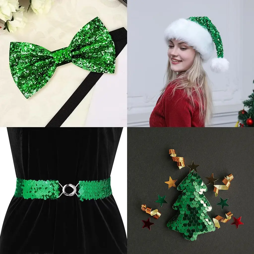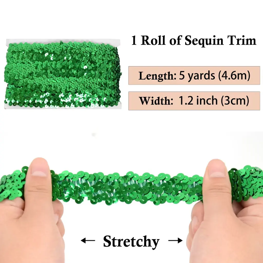 Elastic Sequin Trim, 1.2 Inch 3 Row Flat Glitter Paillette Sequin Strip, Metallic Stretch Sequin Ribbon Sewing Diy Project, 5 Yards, Green