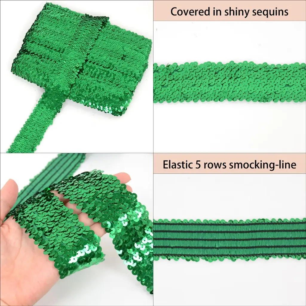 Covered in full shimmering sequins, this trim is designed to catch the light and create eye-catching effects. The stretch smocking band fabric provides both durability and flexibility, making it easy to incorporate into various DIY projects.Whether you're designing costumes for parties or creating festival decorations, this sequin trim is a versatile addition to your craft supplies. It can also be used for gift wrapping, adding an extra special touch to your presents. Additionally, it is great for scrapbooking and card making, allowing you to add a touch of elegance to your creations.Simply sew it onto your desired fabric or surface, and watch as your projects come to life with sparkle and shine. Elevate your sewing, crafting, and decorating with this beautiful and versatile trim.