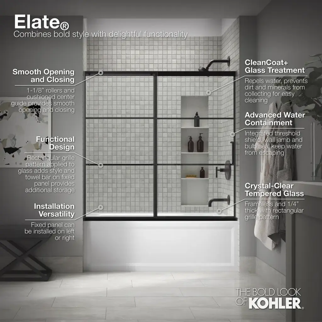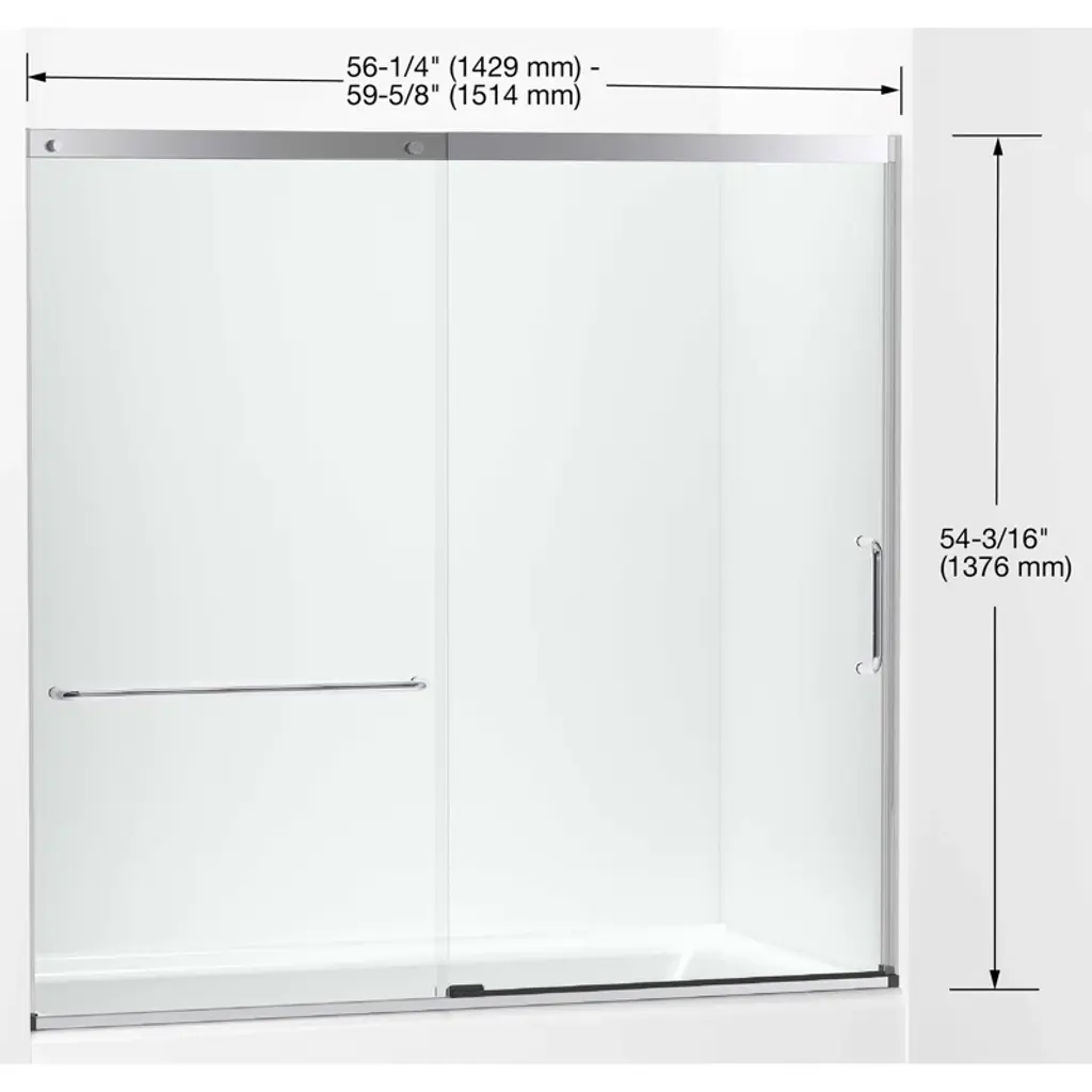 Elate Sliding Bath Door, 56-3/4-In H X 56-1/4 - 59-5/8-In W With Heavy 5/16-In Thick Frosted Glass With Rectangular Grille Pattern