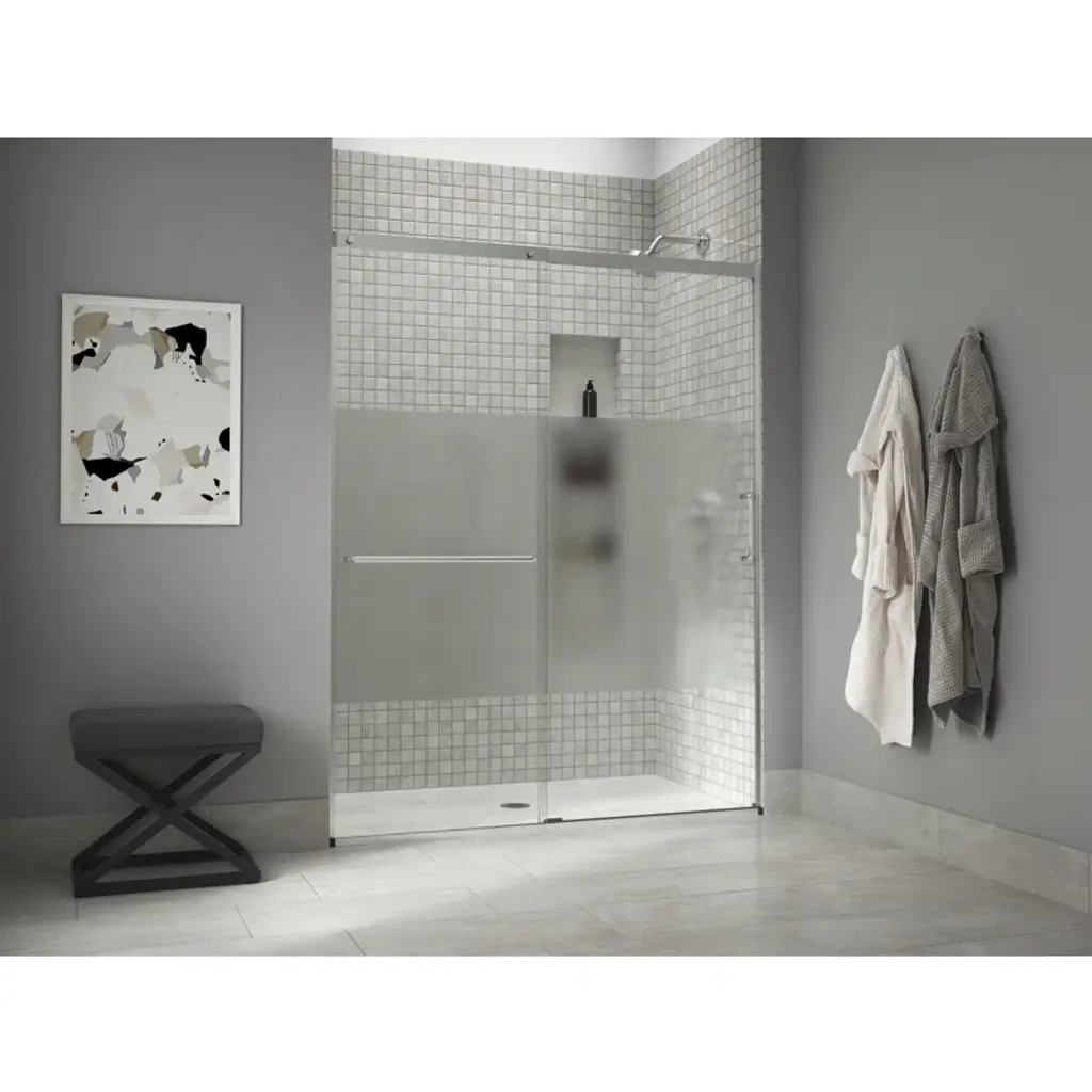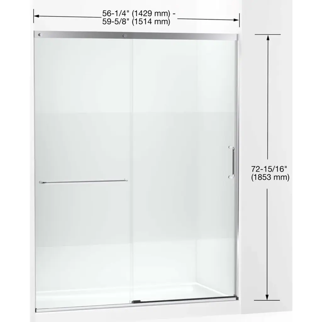 Elate Tall Sliding Shower Door, 75-1/2-In H X 56-1/4 - 59-5/8-In W, With Heavy 5/16-In Thick Crystal Clear Glass With Privacy Band