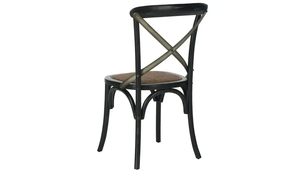 No chair is as famous as Thonet's bentwood caf_ model, and Safavieh's Eleanor X Back side chair pays homage to the beloved original. Your kitchen or dining room will conjure images of Vienna's caf_ society with Eleanor's bent metal frame in distressed hickory finish, rattan seat and authentic arch brace in black metal.