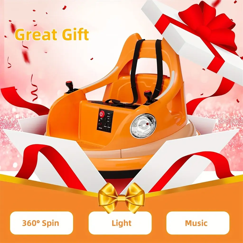 Electric Bumper Car, 12v Battery Car, 2 Speeds, 2 Driving Modes, 360 Degree Rotation, With Music And Lights (Orange) - Orange