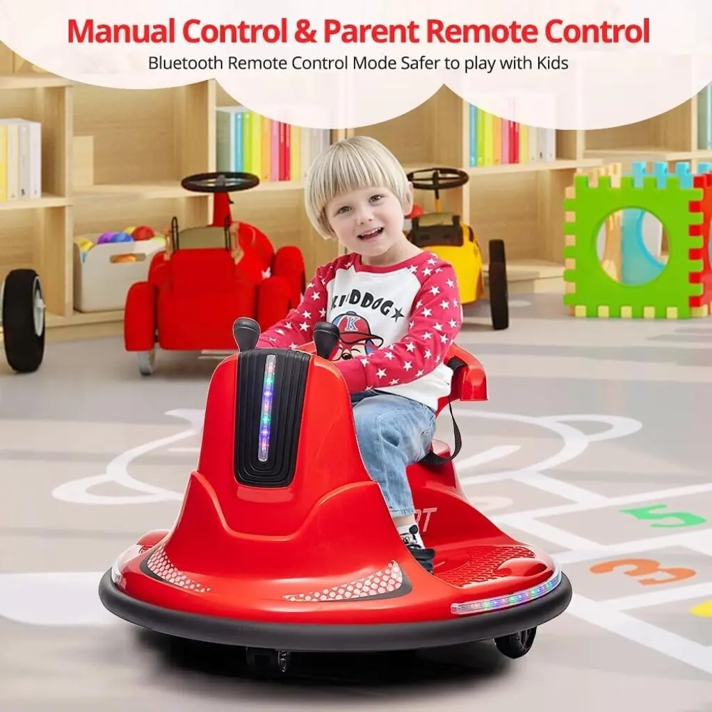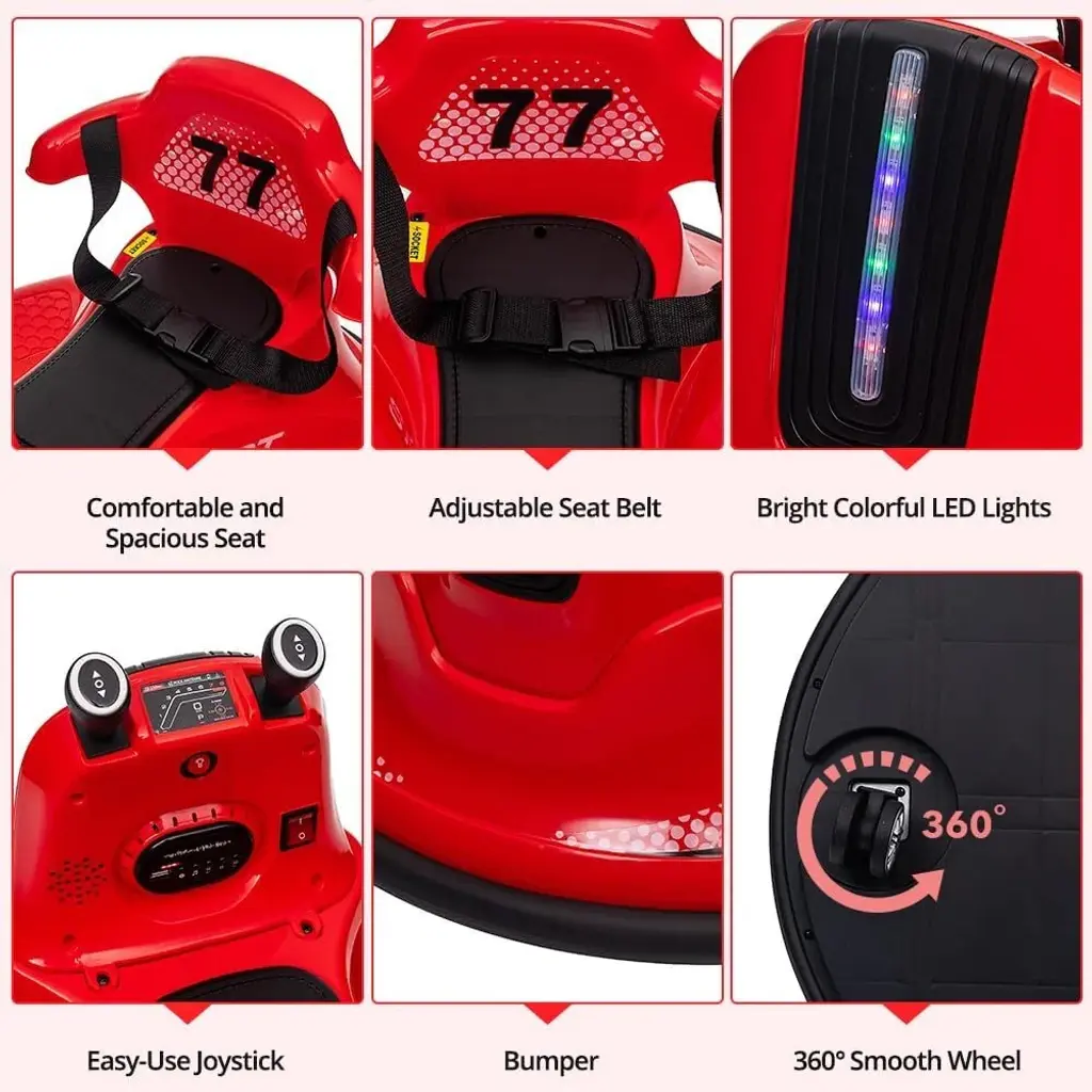 Fun and Entertaining Features: The electric bumper car features LED lights, music, and a safety belt, providing an engaging and entertaining riding experience for toddlers and kids. Enhanced Safety Features: The electric bumper car is equipped with soft anti-collision strips, providing additional protection for children by preventing collisions with walls or other vehicles. Exciting Ride Experience: This ride-on bumper car is an ideal gift for boys and girls, offering a unique and enjoyable riding experience that adds joy and excitement to children's playtime. Versatile Play Options: With remote control functionality and two driving modes, this bumper car offers versatile play options for children, allowing them to enjoy indoor and outdoor fun with ease and convenience. Superior Safety and Durability: Crafted from durable materials meeting stringent child safety standards, this bumper car has obtained CPSIA, CPC, and ASTM-F963 certifications. It has undergone rigorous testing for stability, load capacity, and overall safety, ensuring a reliable and secure playtime experience.