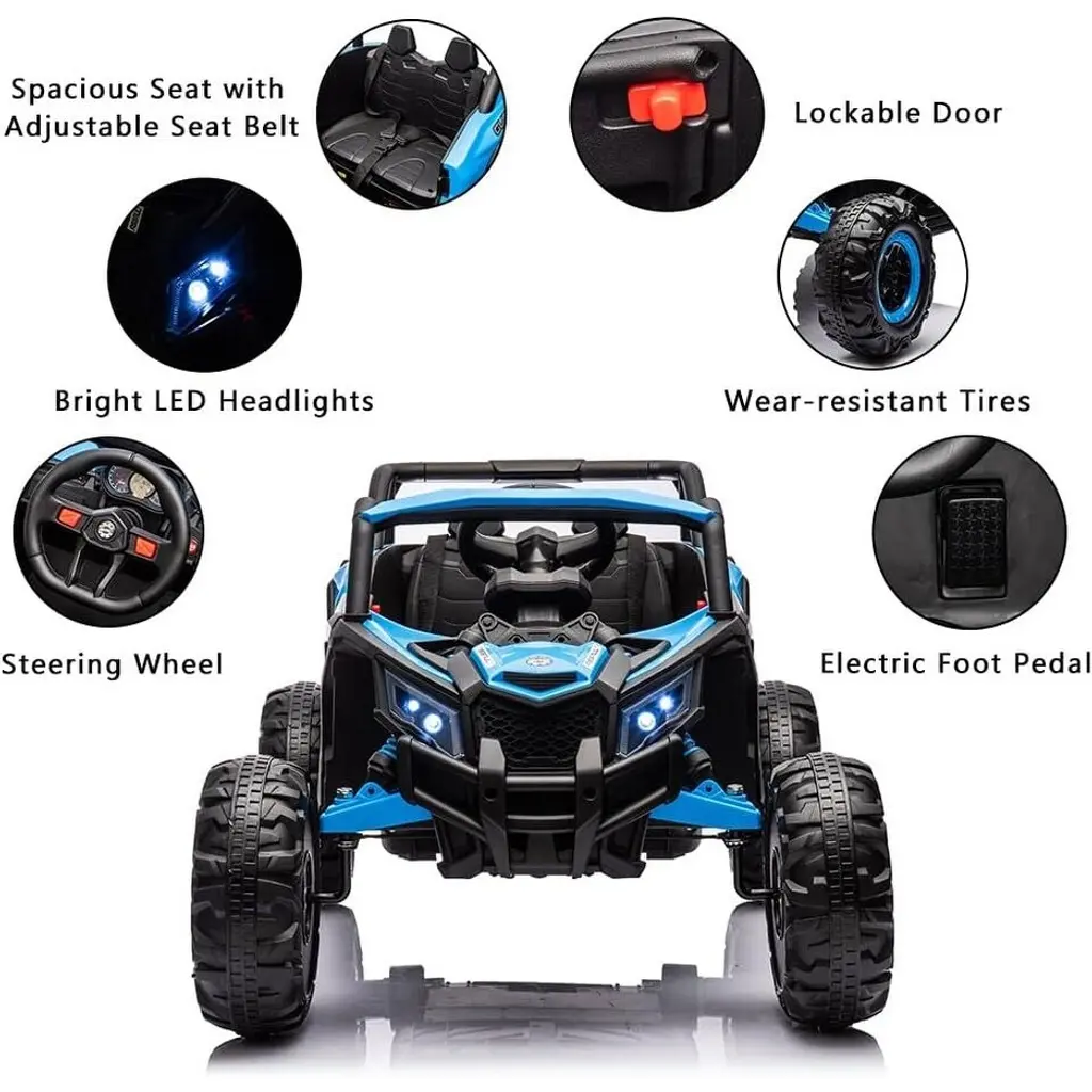 [24V Ride on Car with Remote Control] : Ride-on truck car comes with a remote control, allowing parents to control the car's movements for added safety and supervision. [Battery Powered Electric Car] : Powered by a 24V battery, this ride-on car provides an exciting and thrilling experience for kids. The battery is rechargeable and provides hours of playtime. [Spring Suspension for Smooth Riding] : Equipped with spring suspension, this truck car ensures a smooth and comfortable ride even on rough terrains, providing a realistic driving experience for kids. [Gift for Kids] : With its realistic design, safety features, and exciting features, this ride on truck car makes a perfect gift for kids. It promotes outdoor play and helps develop coordination and motor skills. Passed CPSIA, CPC and ASTM-F963 certification. The car has undergone testing for stability, asphyxiation, load, and shear, ensuring its reliability and safety. Ride On Car for Kids