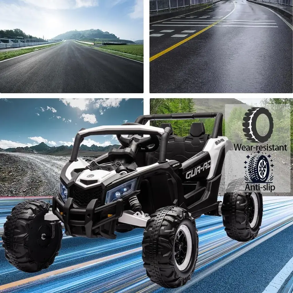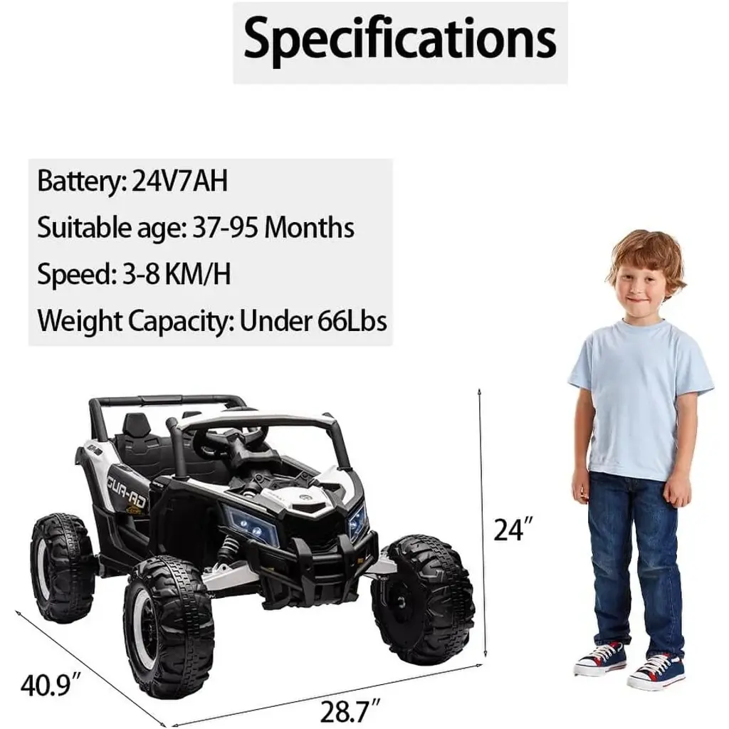 [24V Ride on Car with Remote Control] : Ride-on truck car comes with a remote control, allowing parents to control the car's movements for added safety and supervision. [Battery Powered Electric Car] : Powered by a 24V battery, this ride-on car provides an exciting and thrilling experience for kids. The battery is rechargeable and provides hours of playtime. [Spring Suspension for Smooth Riding] : Equipped with spring suspension, this truck car ensures a smooth and comfortable ride even on rough terrains, providing a realistic driving experience for kids. [Gift for Kids] : With its realistic design, safety features, and exciting features, this ride on truck car makes a perfect gift for kids. It promotes outdoor play and helps develop coordination and motor skills. Passed CPSIA, CPC and ASTM-F963 certification. The car has undergone testing for stability, asphyxiation, load, and shear, ensuring its reliability and safety. Ride On Car for Kids