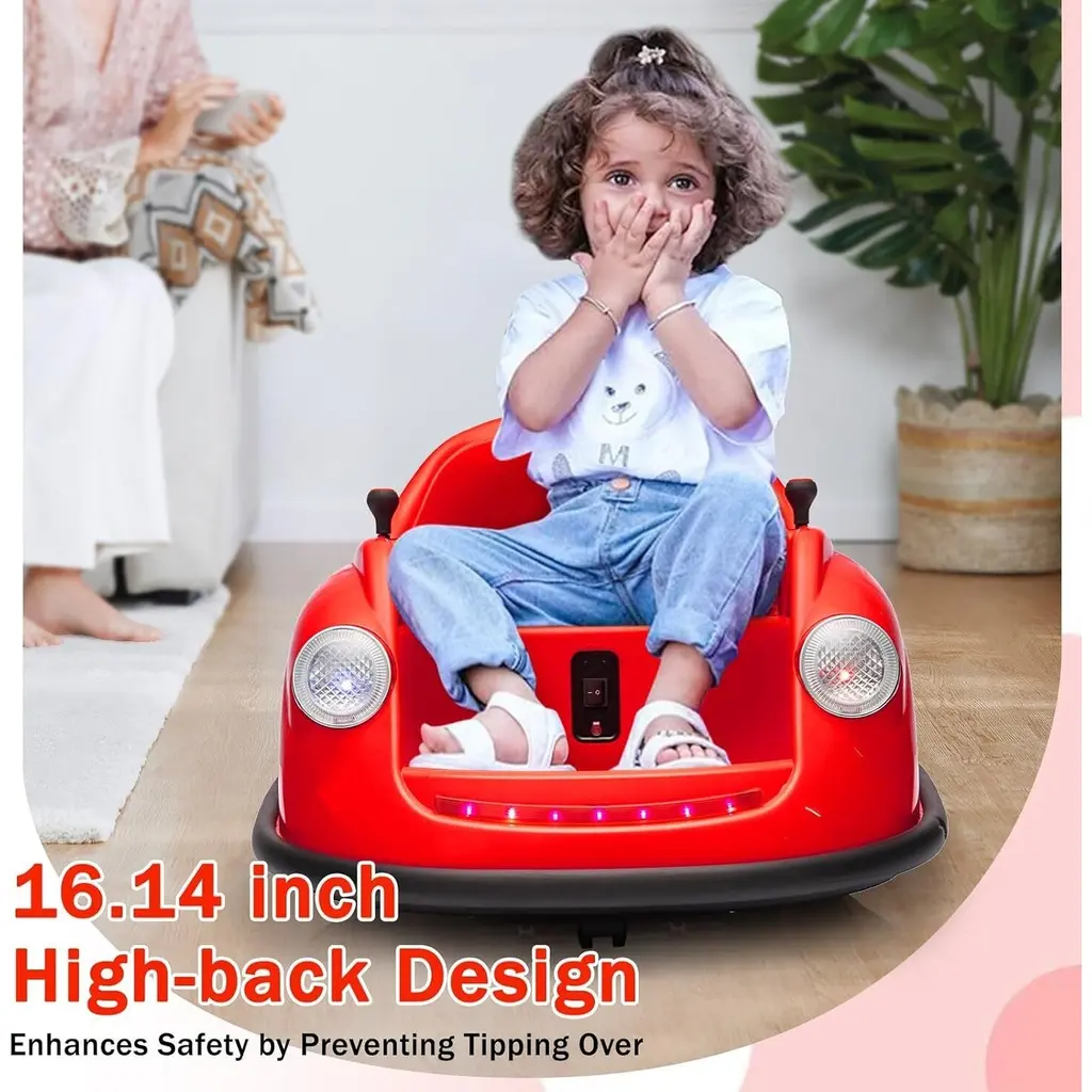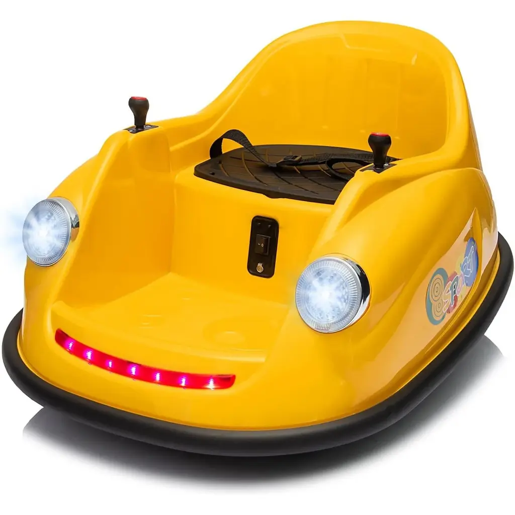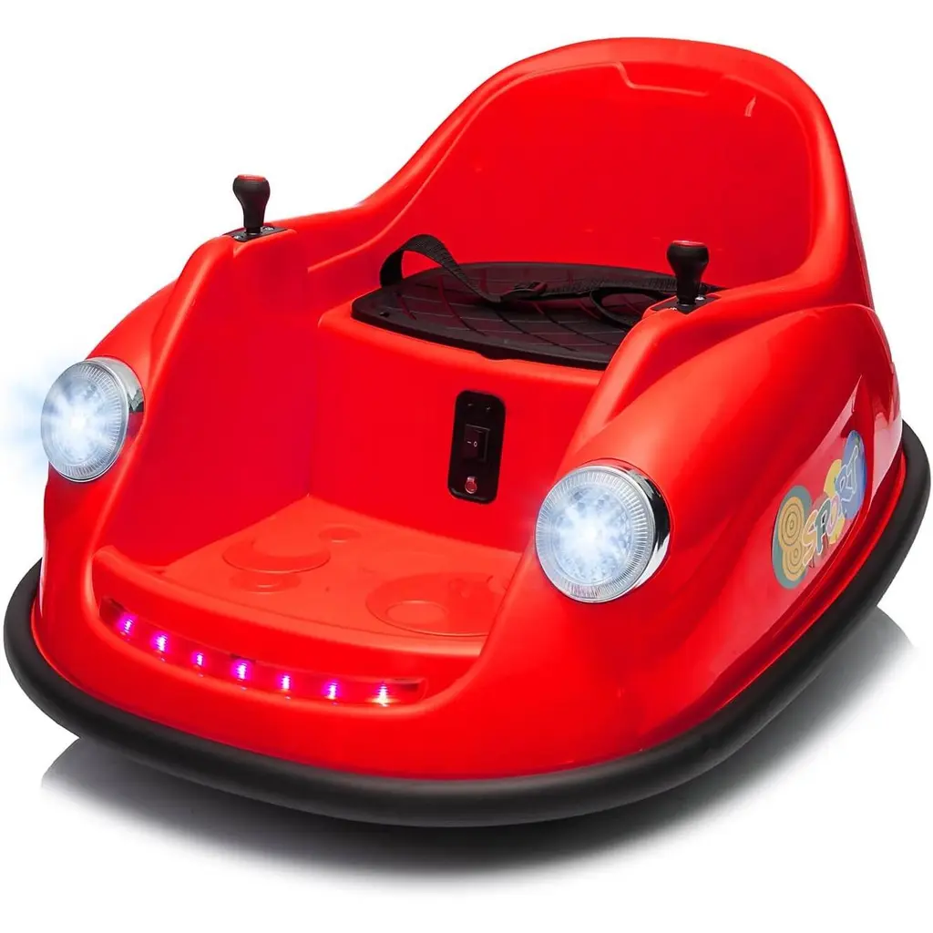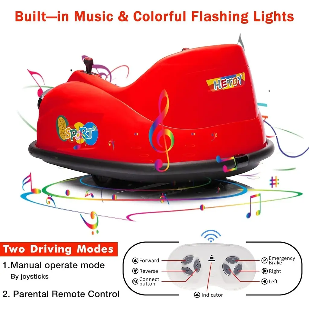 【MANUAL AND REMOTE CONTROL】Let your child drive manually or use the 2.4GHz remote control to guide them when necessary; the remote has forward/reverse and turn controls 【LIGHTS & SOUNDS】A set of functional lights conveniently located on a seat-mounted control panel adds an extra, realistic touch to playtime!Whether for a birthday, holiday, or any other special occasion, this gift is guaranteed to bring joy and excitement to your child's life. 【360 DEGREE SPIN】Bumper car with 360-degree spin for more smiles and greater riding fun. Ideal for toddlers and kids aged 1.5-6 years with a maximum weight capacity of 66 lbs. 【CLASSIC DESIGN】The smooth, curved profile combined with a thick rubber-like bumper and a fun set of vibrant stickers lets your child personalize their ride. It's the perfect birthday, holiday gift, or any other occasion. They will play endlessly and have a blast! 【PREMIUM PERFORMANCE】Includes a rechargeable 12V battery that lets your kids enjoy 1-3 hours of riding fun. Battery charging time is about 5 hours, and 12 hrs when charging for the first time.