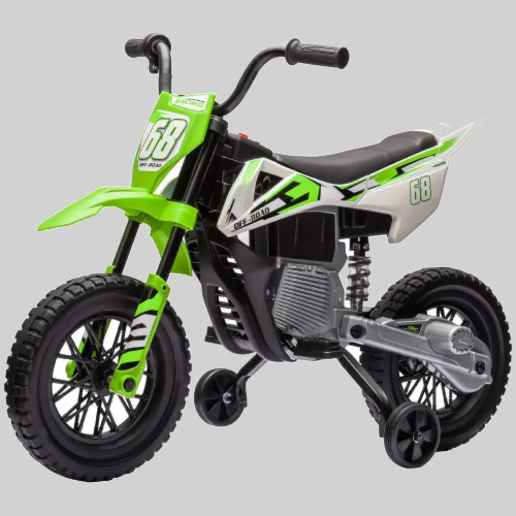 Electric Motorcycle For Kids 3-6 Years, 12v Dirt Bike With Music, Twist Grip Throttle & Training Wheels - Green