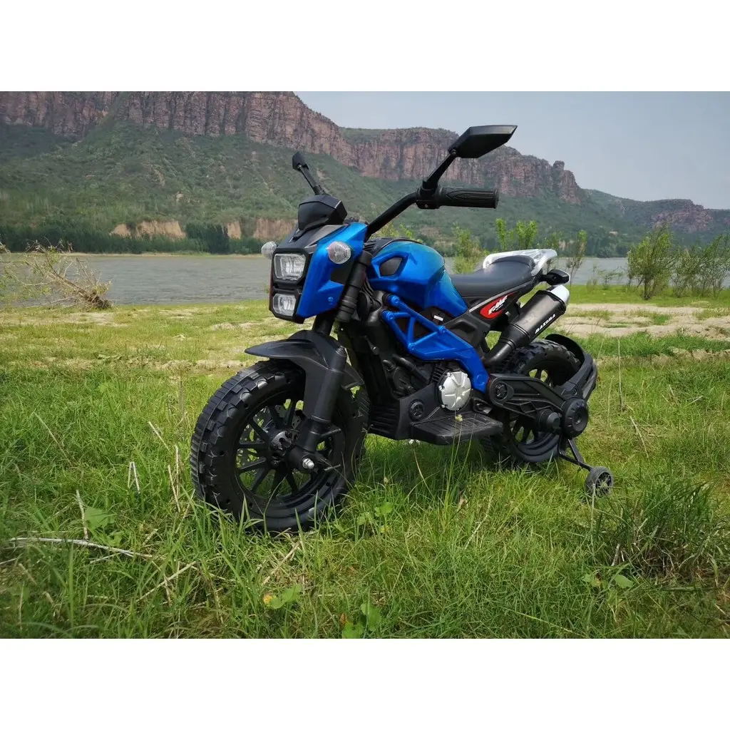 Electric Motorcycle For Kids, Kids Ride On Motorcycle, 12v Electric Dirt Bike With Training Wheels, Hand Racing Foot Brake - Blue
