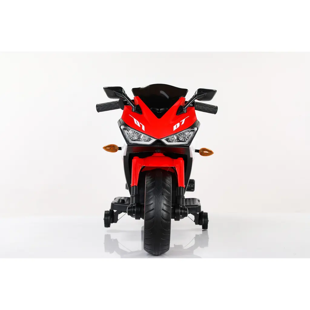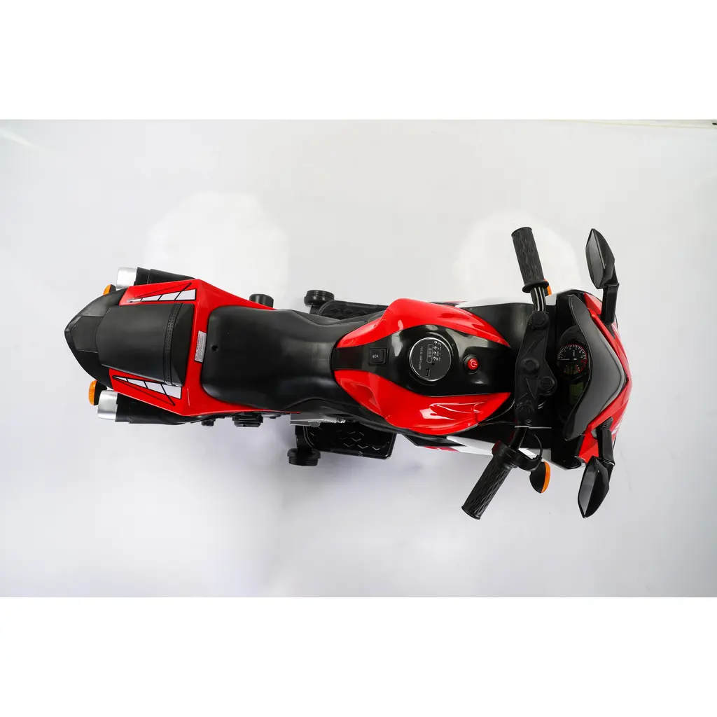 Electric Ride-On Motorcycle For Kids, 12v With Lighting Wheels, Manual Throttle, Foot Brake & Training Wheels, Ages 3-6 - Red