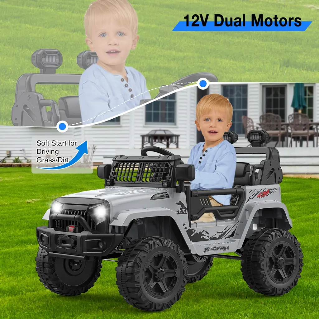 IDEAL GIFT FOR CHILDREN: Our kids' ride-on truck is made from safe materials and packed with features that enrich your child's playtime while fostering parent-child bonding. With ASTM and CPSIA certifications, it's an excellent Christmas or birthday present for your little ones.VERSATILE DRIVING MODES AND REMOTE CONTROL OPTION: The ride truck is designed with two driving modes to cater to kids of various ages, from 1 to 8 years old. For toddlers aged 1 to 3, the remote control mode allows parents to guide the ride, while children aged 37-96 months can take charge and enjoy driving independently.FUNCTIONAL CONTROL PANEL: This electric truck is equipped with a simple one-key start feature. The control console includes a Bluetooth speaker, horn, headlights, and adjustable speed options, offering kids an authentic driving experience.ROBUST 12V MOTOR & REALISTIC FEATURES: Built for exploration, this truck features an adjustable seat belt, bright LED headlights, secure doors, and a grid windshield for an adventurous aesthetic. Its 12V motor and traction tires enable it to different surfaces with ease.EMPHASIS ON SAFETY: The ride-on truck includes a single seat with a safety harness to ensure protection during rides. Additionally, the parental remote control has an emergency brake function, providing extra security in urgent situations.