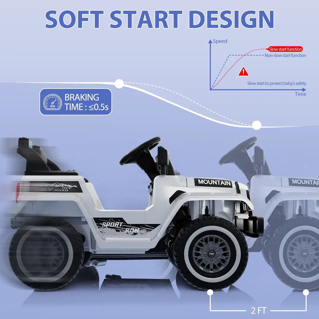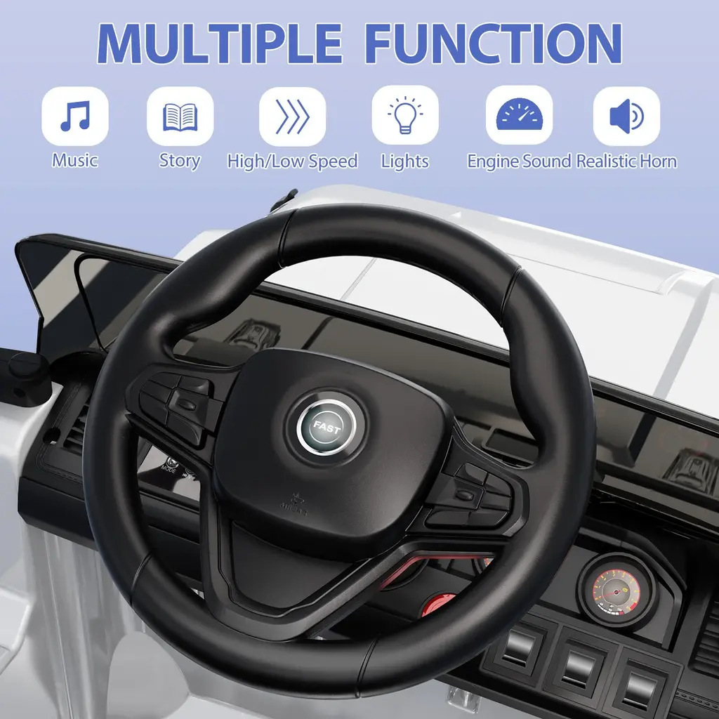【Ideal Size for Children】This ride-on toy is designed for boys and girls ages 3 to 5 years old, weighing less than 66 lbs. It features a single seat with a safety belt for secure driving. Its compact design is perfect for small hands, allowing young racers to experience driving like the grown-ups!【Parental Control Options】Our ride-on car offers two driving modes. Parents can use a remote control to guide the vehicle, ensuring safety for younger children. As they grow, boys and girls can take the wheel themselves with the foot pedal and steering wheel for more independence.【Strong Performance】Powered by a 12V 4.5 AH rechargeable battery and two 25W motors, this electric vehicle operates at a safe speed of 2-5 mph. It charges in just 8-12 hours, providing 40-60 minutes of driving fun. The adjustable seatbelt and four-wheel suspension ensure a smooth ride.【Exciting Features】With a built-in multimedia player, this electric vehicle offers an engaging driving experience. Boys and girls can enjoy a one-touch start button, LED lights, and seat belts, making every ride an adventure.【Great Gift Idea】This versatile electric vehicle can handle various terrains—grass, gravel, yards, and parks—ensuring safety and fun. It's an ideal gift for ages 3 and up, perfect for birthdays, holidays, and special occasions. Surprise your little ones with this exciting toy!