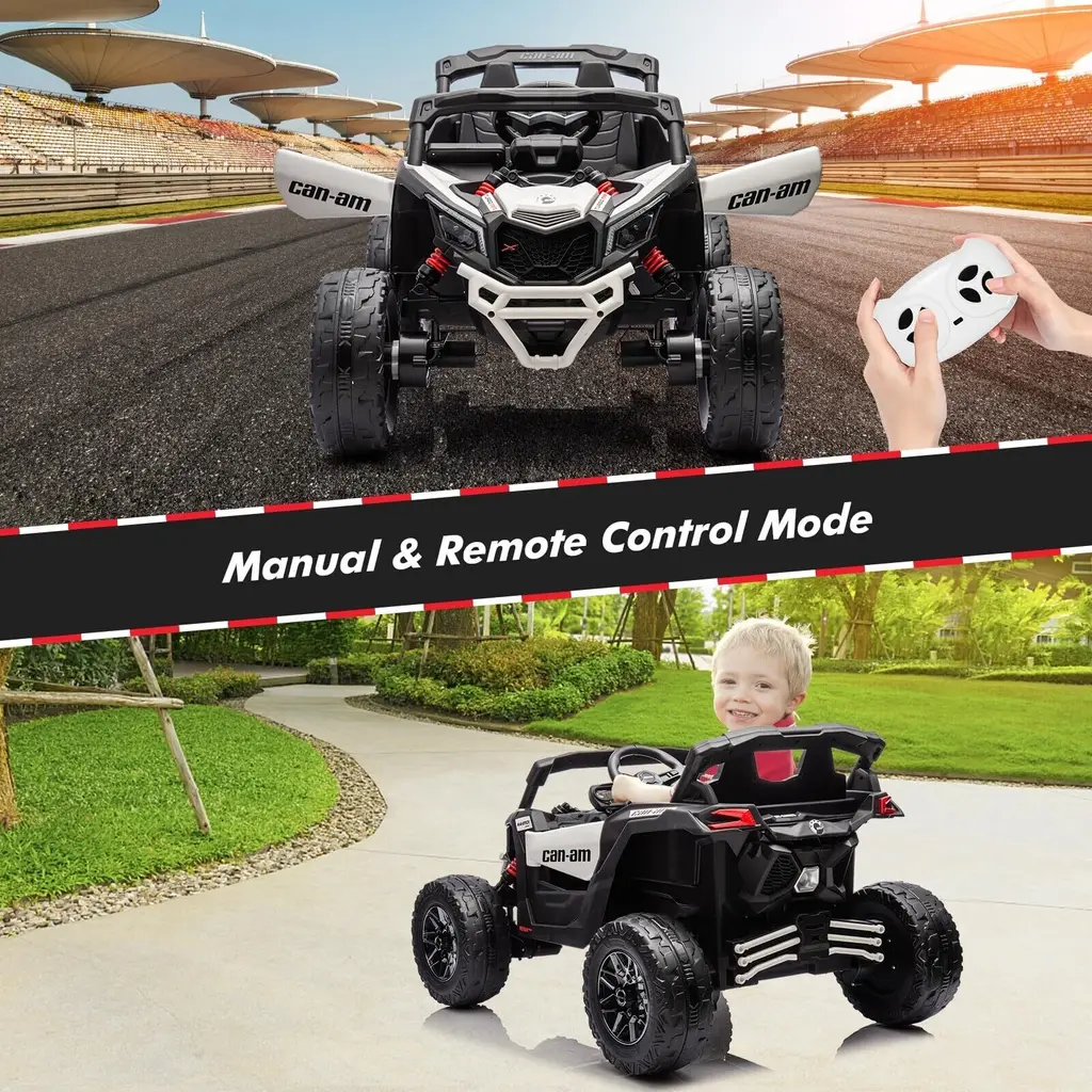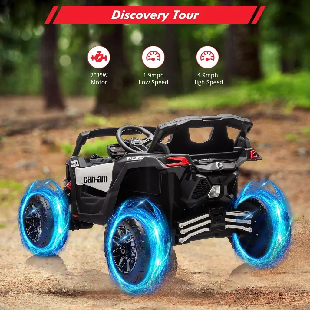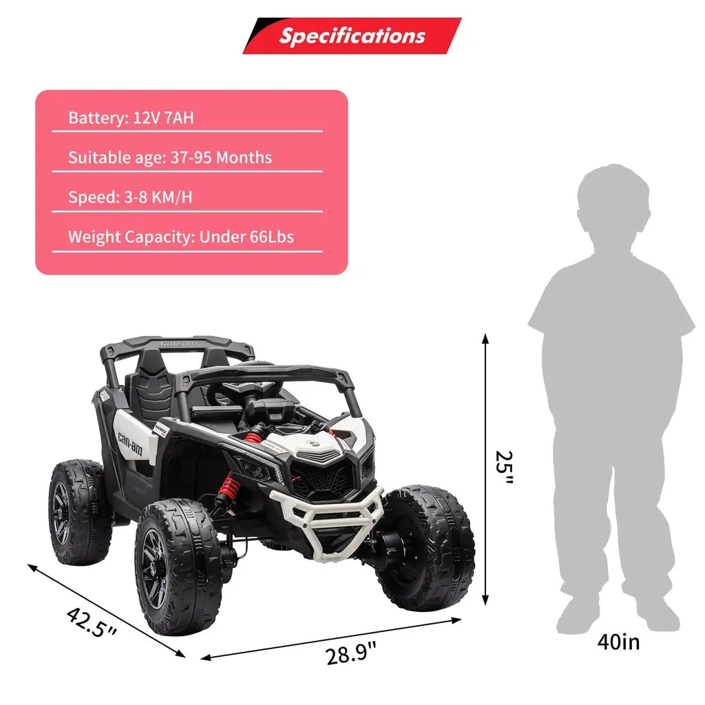[Powerful Performance]: Equipped with 12V 7AH rechargeable battery. Equipped with spring suspension, this UTV car ensures a smooth and comfortable ride even on rough terrains. [12V Licensed Can-Am Ride on UTV Car] : Ride-on UTV car is officially licensed by Can-Am and comes with a remote control.Children can drive the car themselves using the foot pedal for acceleration and the steering wheel for maneuvering. [Different Speeds & LED Lights]: This electric car offers different speed options, allowing kids to select the appropriate speed based on their skill level. [Safe & Durable]: Made from durable materials that meet all child safety standards.Passed CPSIA, CPC and ASTM-F963 certification. The car has undergone rigorous testing for stability, asphyxiation, load, and shear, ensuring reliability and safety. [Gift for Kids] : With its realistic design, safety features, and exciting features, this ride on UTV car makes a perfect gift for kids.