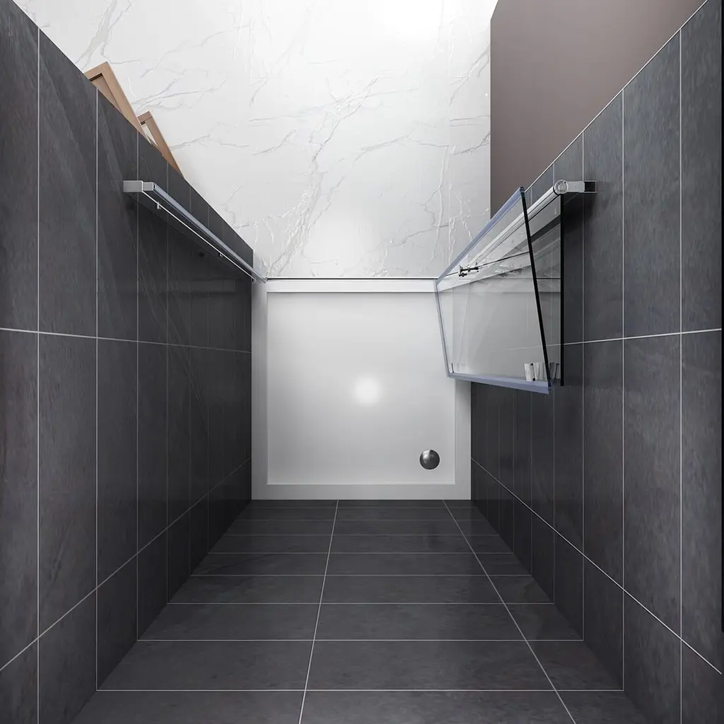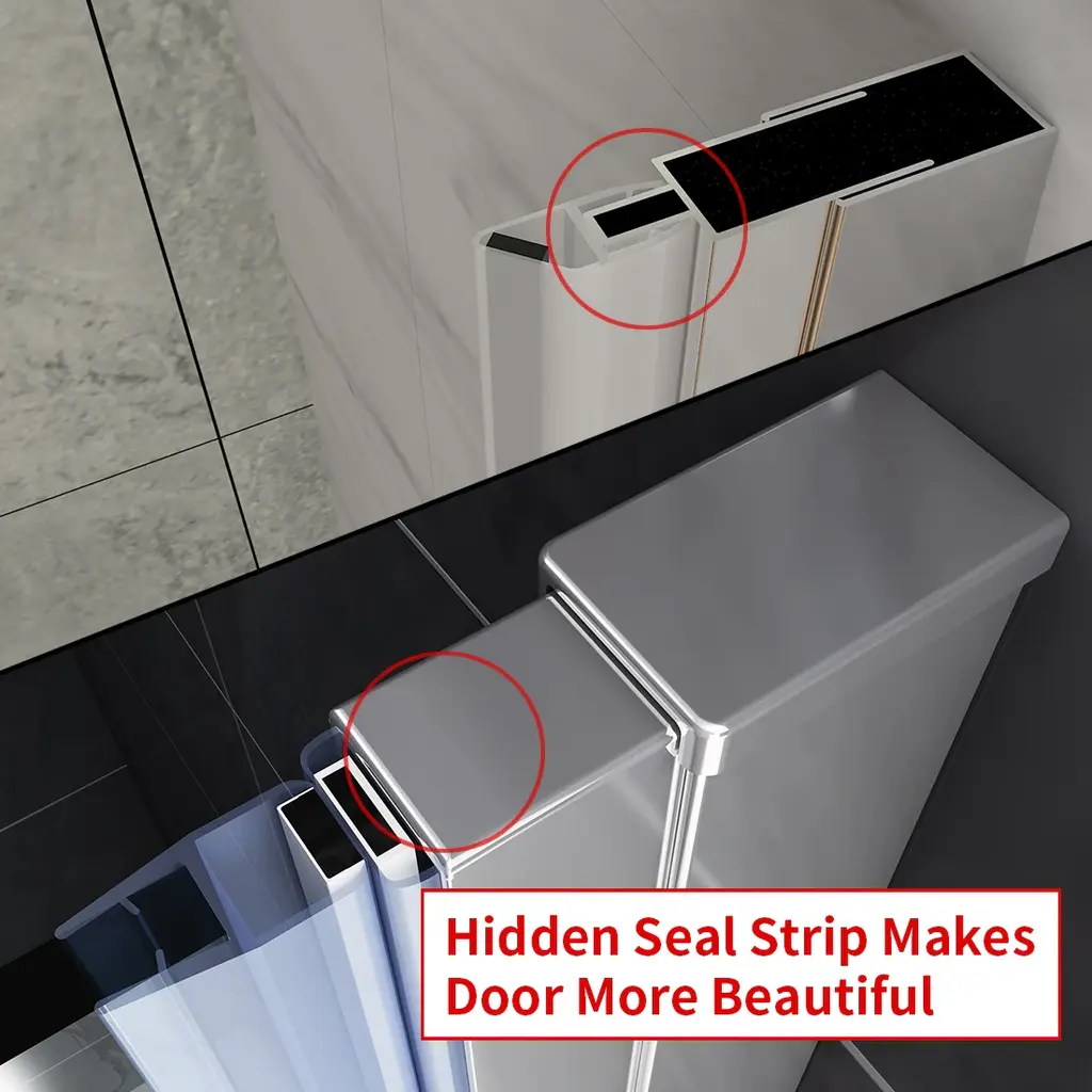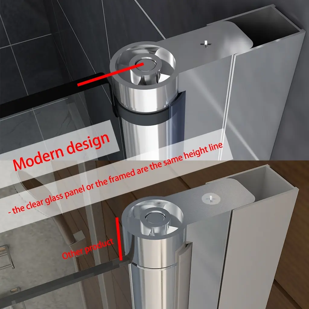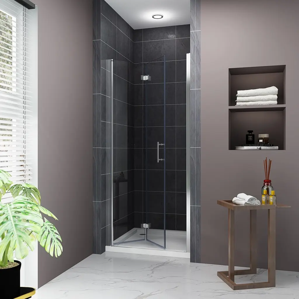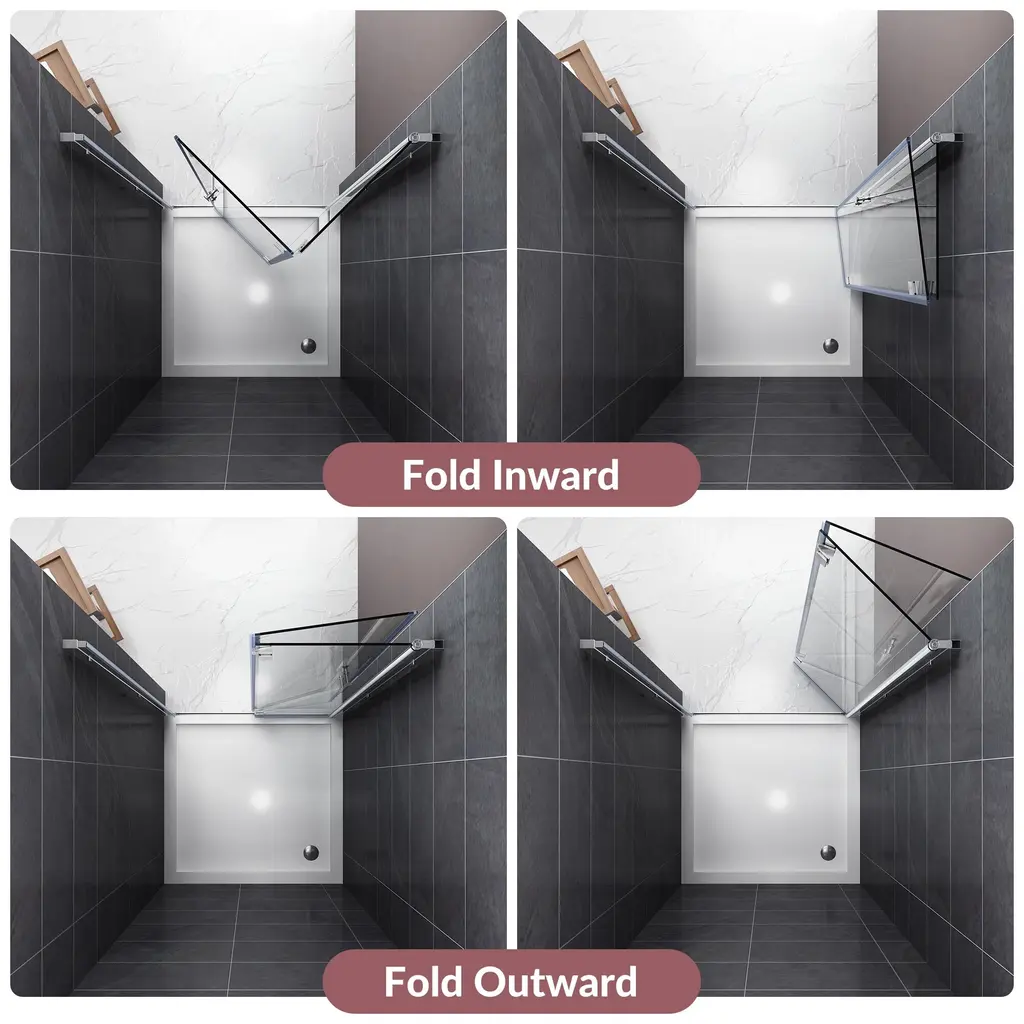 Elegant Bi-Fold Frameless Pivot Swing Shower Door Enclosure boasts a sleek and modern design that is both stylish and functional. Made with 1/4-inch clear certified tempered glass, this door is adjustable on each side to fit any bathroom layout. The chrome finish or matte options offer a trendy look, while the vinyl magnetic shower door seals strips provide a waterproof guarantee. The high-quality chrome hinges are flexible and can rotate 180° for added convenience. Plus, the overlapping design saves space when fully open. Choose from four different sizes and two color options to customize your bathroom. Professional installation is recommended. Features:
