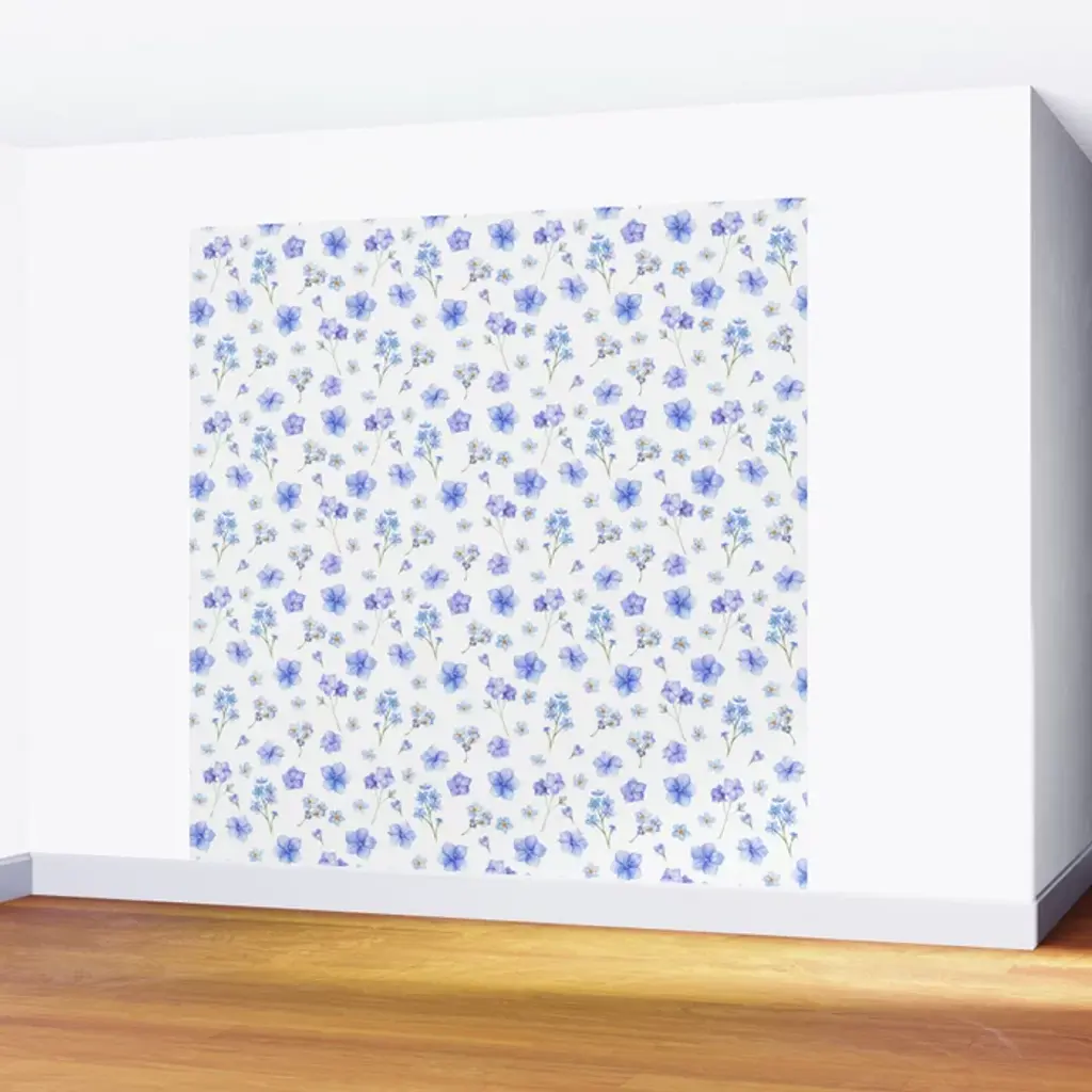 Elegant Blush Blue Yellow Watercolor Floral Pattern Wall Mural