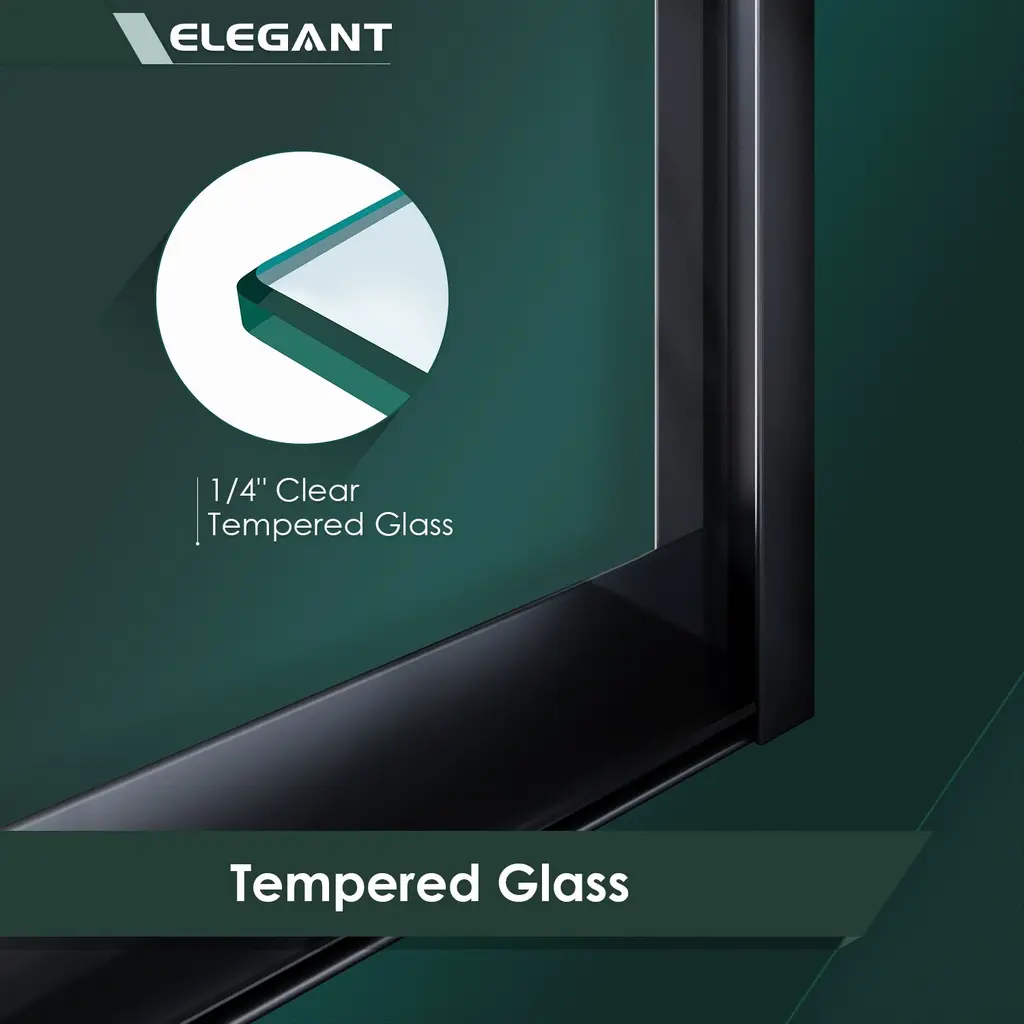 Elegant Double Sliding Shower Door 46.5 in.- 48 in. W x 72 in. H.This shower door is made of high quality aluminum for durability.The clear tempered glass is 1/4 inch thick and ANSI Z97.1 certified, ensuring safety and easy maintenance. Professional installation is recommended. Features: