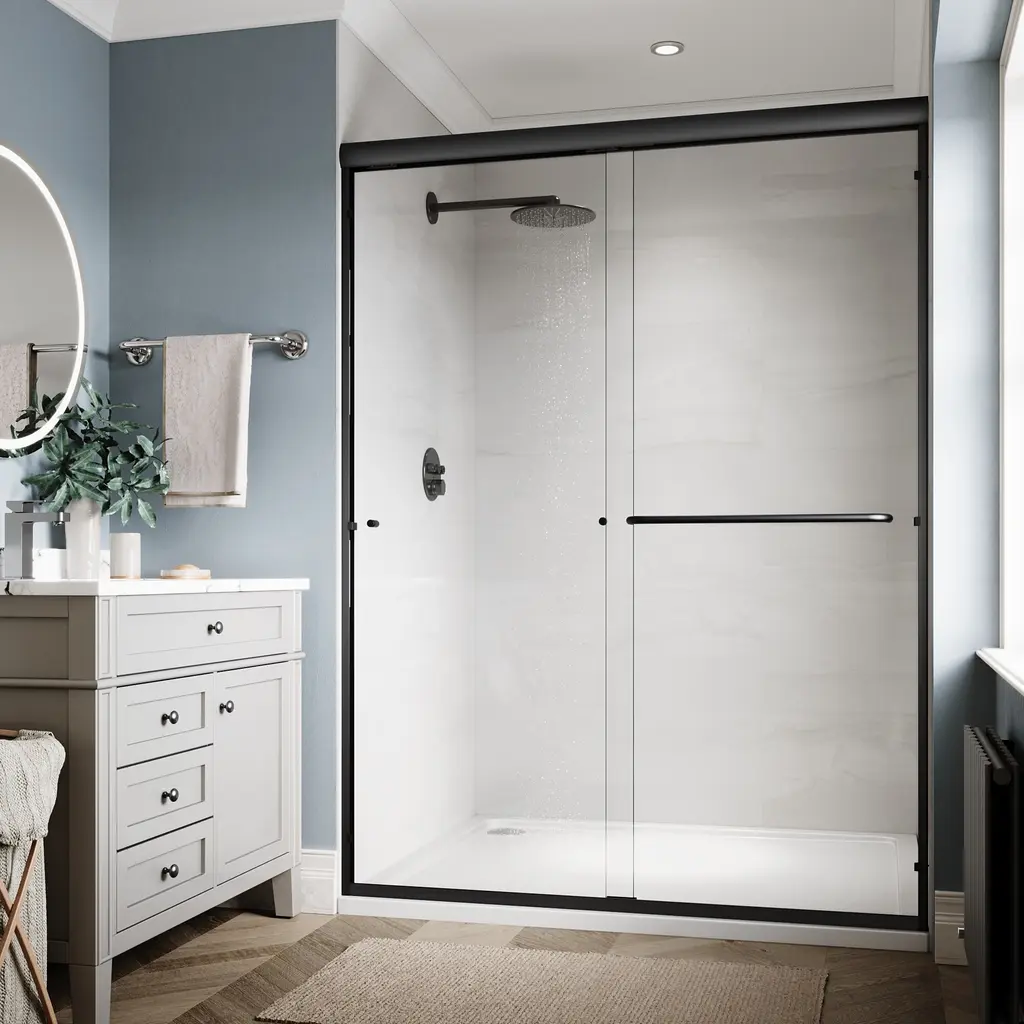 Elegant Double Sliding Shower Door 46.5 In.- 48 In. W X 72 In. H (Shower Base Is Not Included) - Black