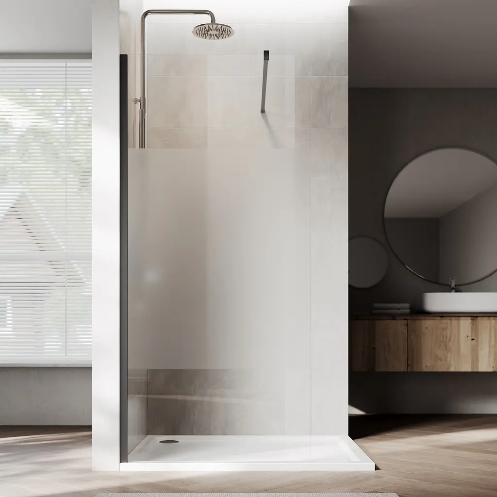 Elegant Frameless Fixed Glass Panel Shower Doors 72inch High With Semi Clear Frosted Glass Black Hardware - 28"x72" - 28"x72"