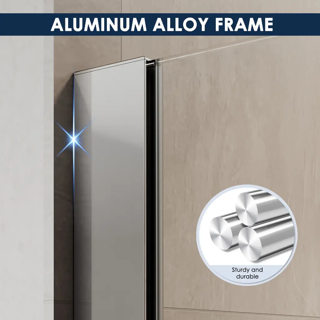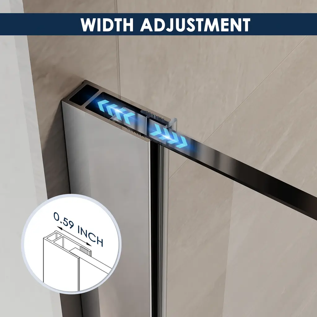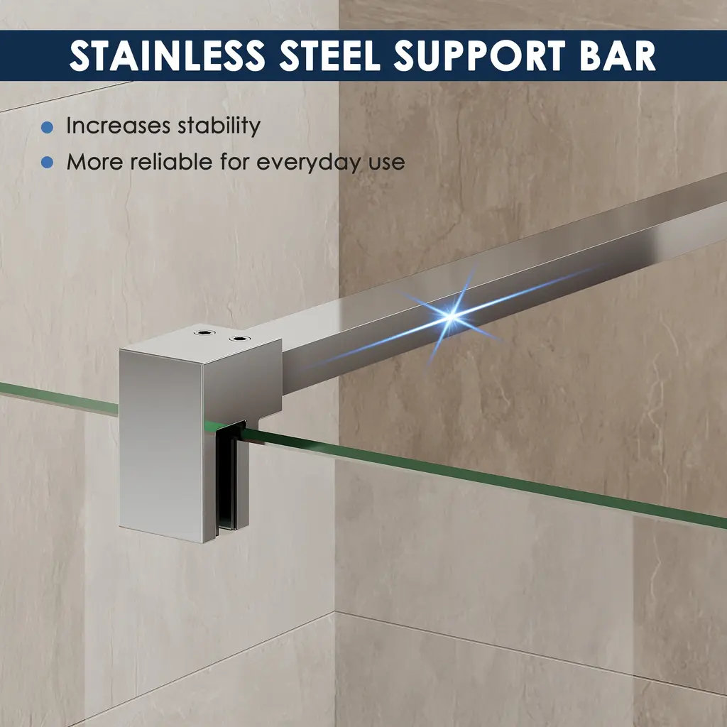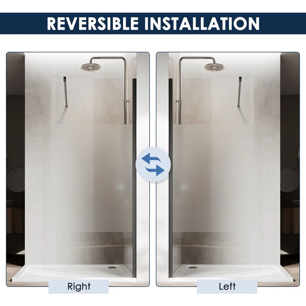 Our Elegant Frameless Signle Fixed Glass Panel Shower Door creates your bathroom with a sense of simplicity and style. Featuring 5/16-inch (8mm) high-strength nano-clear frosted glass throughout, the panel retains the openness of clear glass, while the frosted glass subtly obscures the view and protects privacy. The frameless design eliminates the traditional bezel design and secures the panel with support bar for a solid, wobble-free installation.The 0.59-inch (15mm) adjustment range provides access to the shower area. Silver aluminum hardware adapts to any style of bathroom.Specifications:Features: