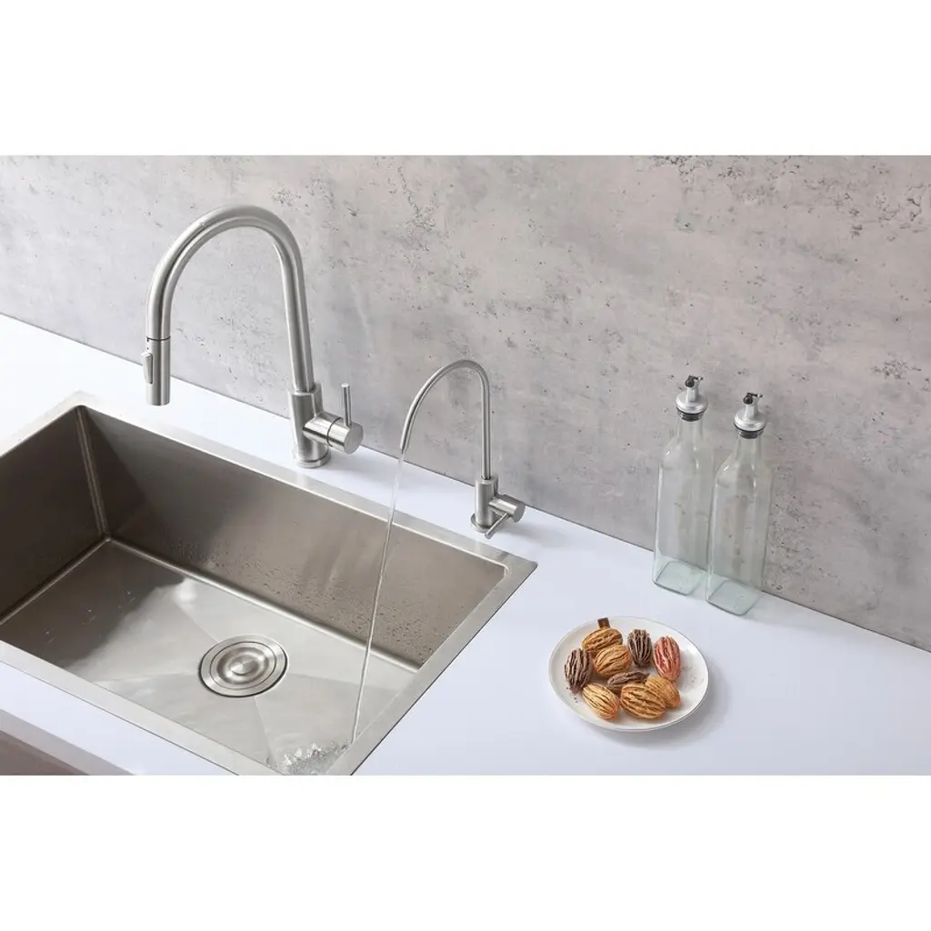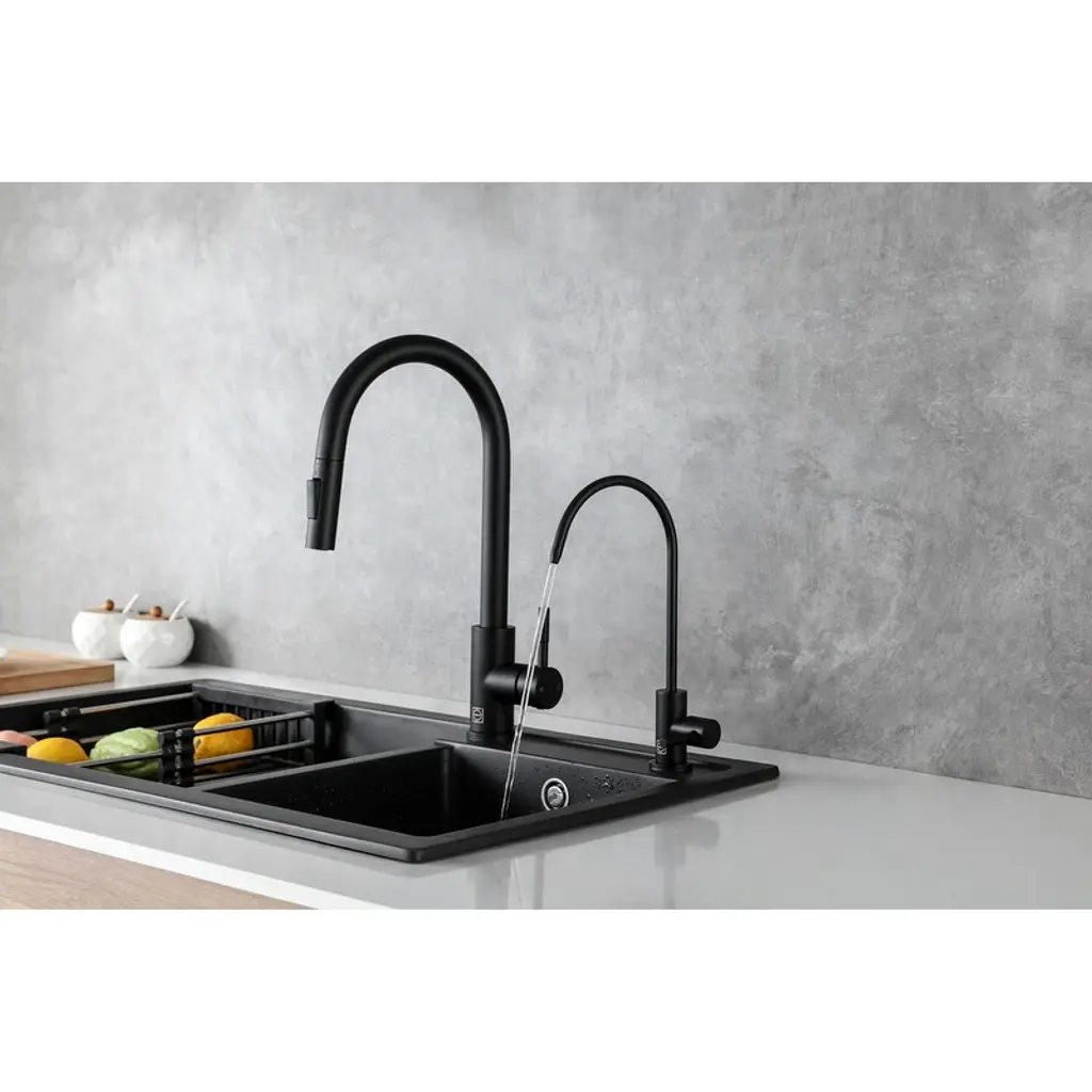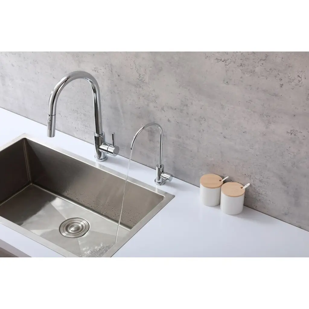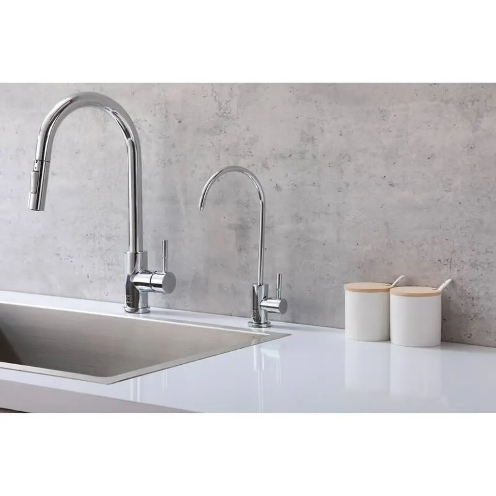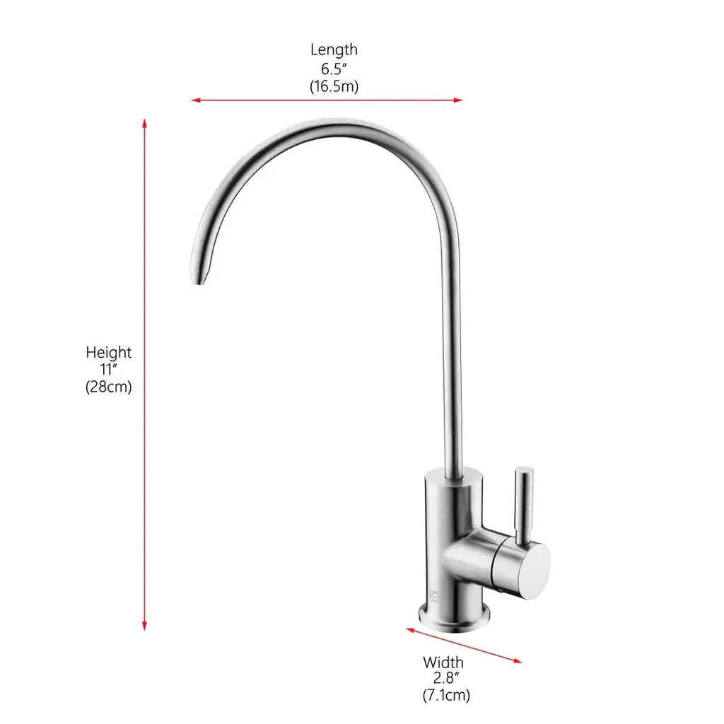 Experience effortless hydration with this purpose-built kitchen faucet, delivering crisp, chilled water instantly—eliminating the wait for a refrigerated pitcher. Seamlessly controlled by a single-handle lever, regulate water flow and temperature for a hassle-free pouring experience. Constructed from premium stainless steel, this faucet epitomizes both elegance and endurance, boasting corrosion-resistant properties for enduring functionality. Its gooseneck design facilitates easy filling of tall glasses and bottles, ensuring convenience at every pour. UPC and IAPMO Certified, it guarantees safety and top-tier performance. Installation is a breeze with its single-hole design, promising a swift setup without complications. Engineered with a high-quality ceramic cartridge, it promises enduring, drip-free operation. Available in multiple chic finishes. This faucet effortlessly complements any kitchen decor, ensuring style meets utility seamlessly.Elegant Lighting FAK-303 Features:Elegant Lighting FAK-303 Specifications:
